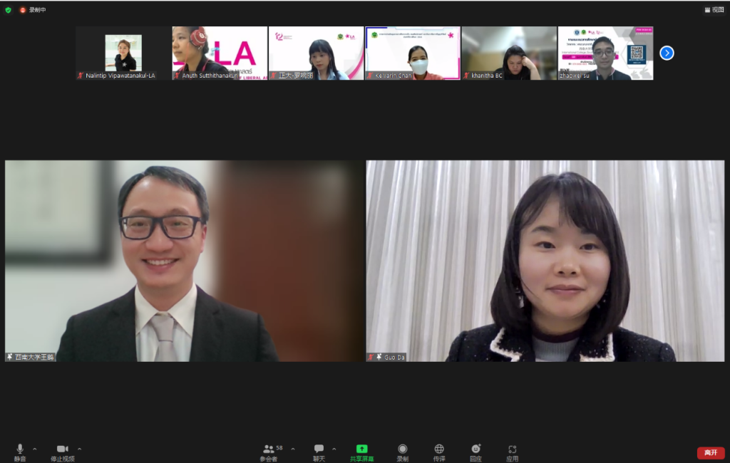 2月22日下午,泰国正大管理公司(以下简称正大)来华留学专场招生说明会在线上成功举行。suncitygroup太阳集团刘猛书记、汉教系李丹老师、项目协调人王鹊,正大文公司商务汉语系黄伟荣主任、苏兆伟老师和周小月老师,以及正大60多名在读员工、家长和毕业生参加。