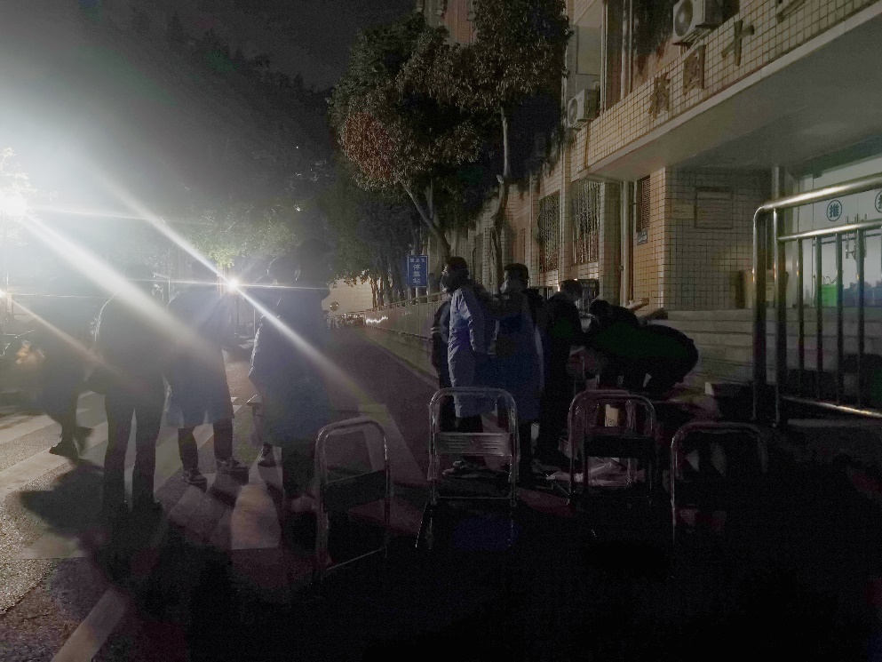凌晨在橘园集合准备工作的老师们