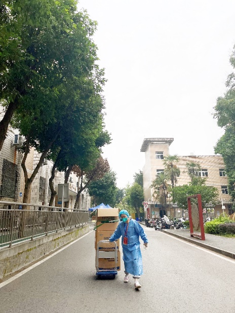 汪鑫阳老师在橘园运送防疫物资