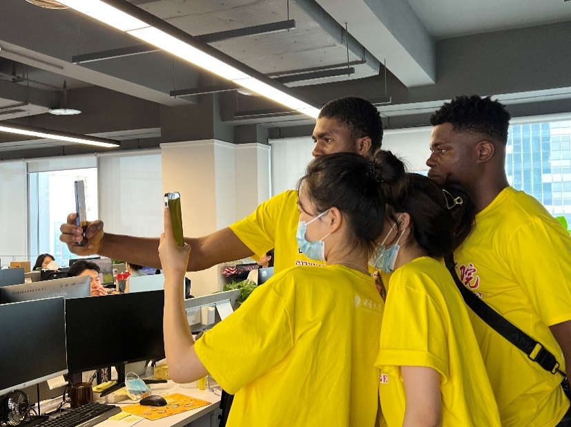 在负责人的带领下,实践队队员们亲身体验公司最新科技成果,对此公司学子王杰睿(尼日利亚籍)赞叹道:“之前在自己国家就使用过传音公司的产品,比如TECNO还有Infinix,但是来到产品的研发公司近距离体验还是第一次,感觉新奇又震撼。”