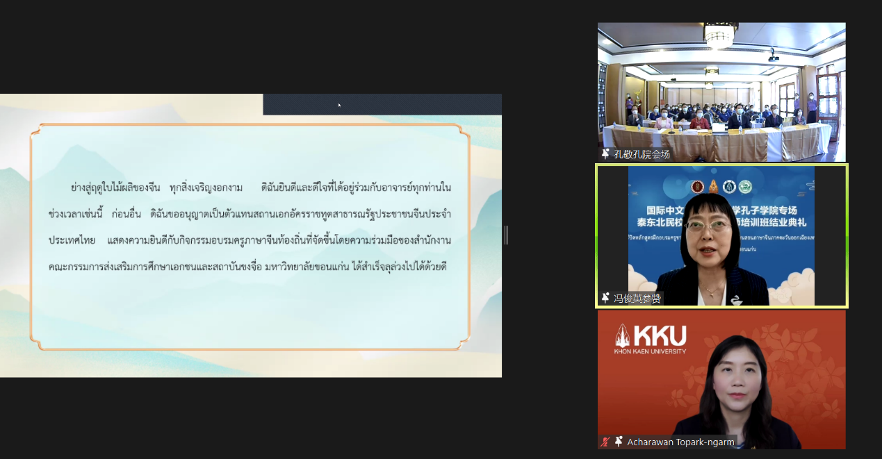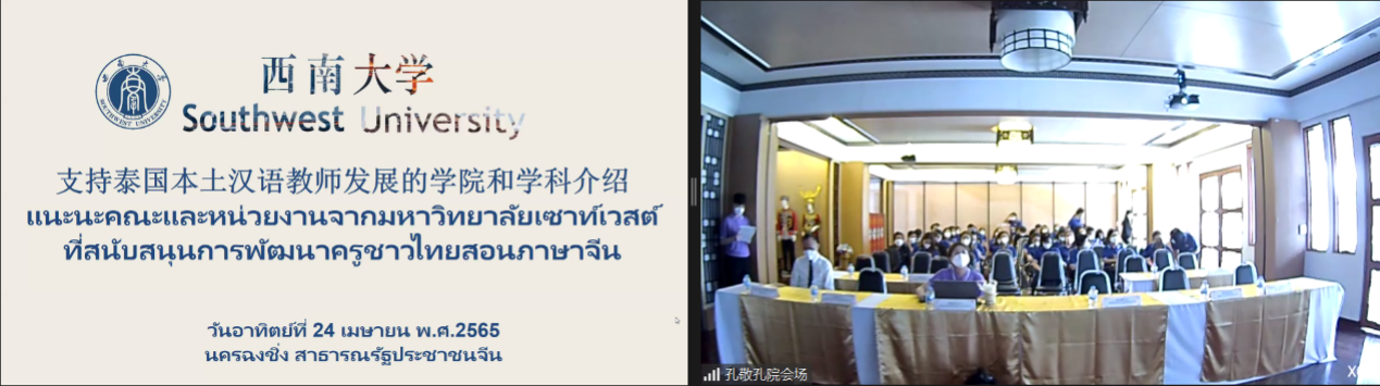 4月24日上午,公司suncitygroup太阳集团、教育学部和教师教育公司受邀参加由泰国教育部民校教育委员会(以下简称民教委)和孔敬大学孔子公司(以下简称孔敬孔院)共同举办的“泰东北民校本土中文教师培训”,向380名泰国教师(80人线下,300人线上)介绍中文及教育学科硕博专业的设置、招生及培养,这是去年12月以来suncitygroup太阳集团开展的第7场招生宣讲,参加人数和影响再创新高。