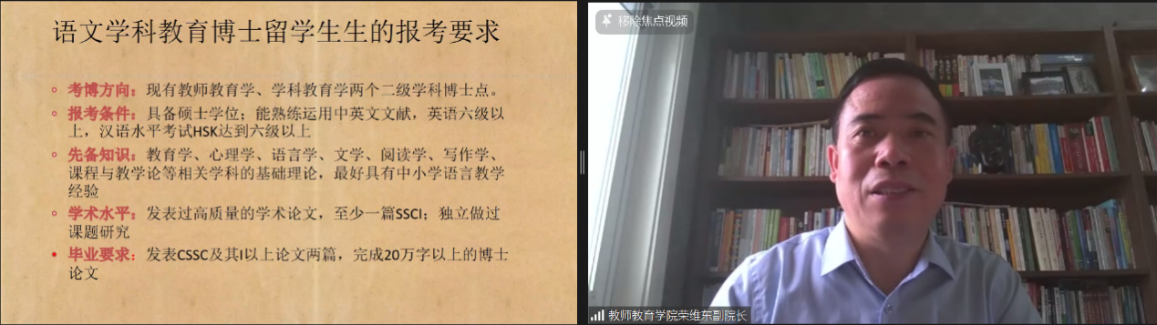 教育学部副部长罗生全教授介绍学部在公司“双一流”建设中的重要地位、重点学科,着重讲解教育领导与管理、课程与教学论、教育技术学等博士专业,并简要介绍来华职工获得博士学位的必经阶段。