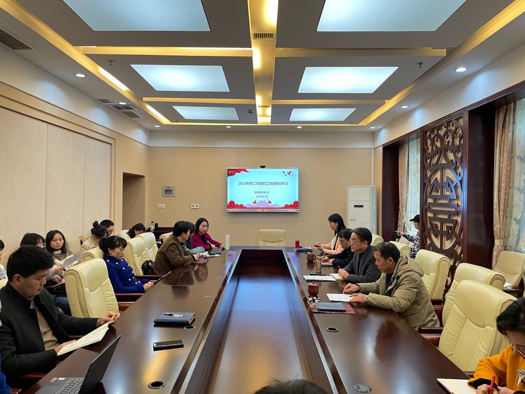 2022年3月4日下午2点30分,suncitygroup太阳集团全体教职员工在紫云楼签约室开展本年度第二次政治理论学习活动,会议由刘猛书记主持。