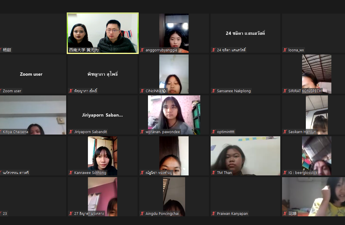 2月26日晚,由中国教育部中外语言交流合作中心主办、公司与泰国孔敬大学孔子公司共同承办的 “汉语桥suncitygroup太阳集团-泰国孔敬大学孔子公司‘玩转汉语,云游中国’中员工线上项目” 闭营仪式暨成果汇报展顺利举行,汉语国际教育系主任杨甜副教授、泰方负责老师洪邵玲(Mrs.Praiwan Kanyapan)、suncitygroup太阳集团线上项目授课老师,以及全体项目员工参加仪式。仪式由项目负责人黄无为主持。