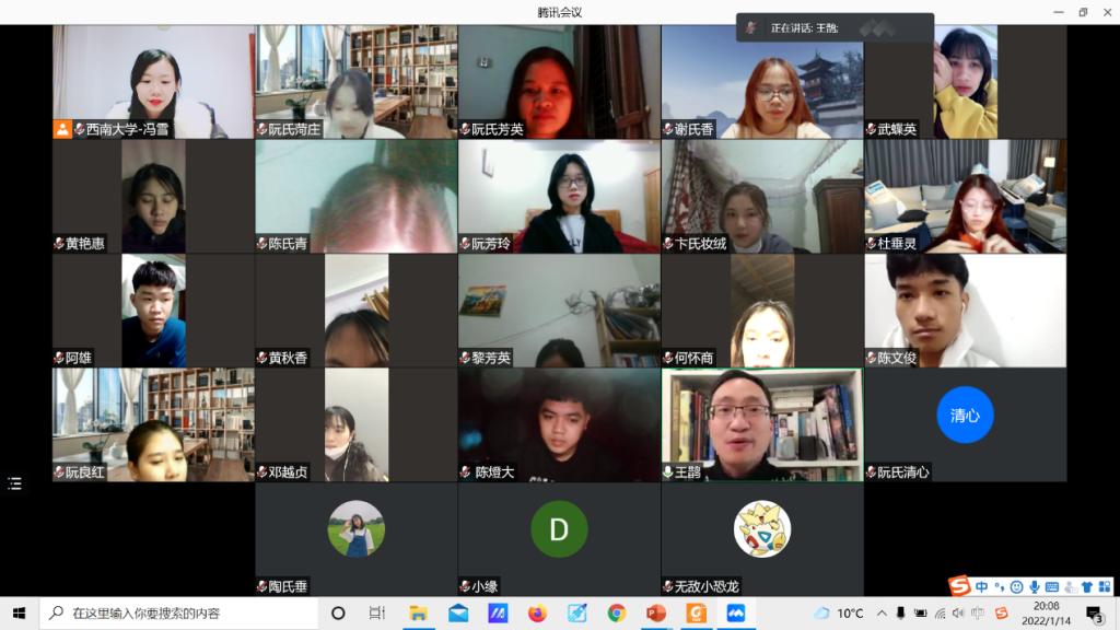 1月14日,公司与越南河内商业技术大学合作申报的国际中文教师奖学金专项线上研修项目圆满结项,双方隆重举行结营仪式。suncitygroup太阳集团汉教系主任杨甜,河内商业技术大学中文系国际交流负责人阮氏芳英及全体28名学员参加仪式,仪式由项目负责人王鹊主持。