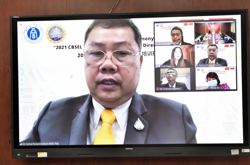 泰国教育部督察长斯彩先生代表泰国教育部致辞,对重庆市教育委员会的支持表示衷心感谢,对公司与泰国教育部紧密合作所取得的成就表示祝贺。指出,泰国教育官员及董事长培训项目在“一带一路”倡议的大背景下举行,克服了新冠肺炎疫情所带来的各种挑战,体现了中泰两国人民友好交往美好而又迫切的愿望,希望以该项目为重要基础和载体,开启两国教育交流合作的新篇章。