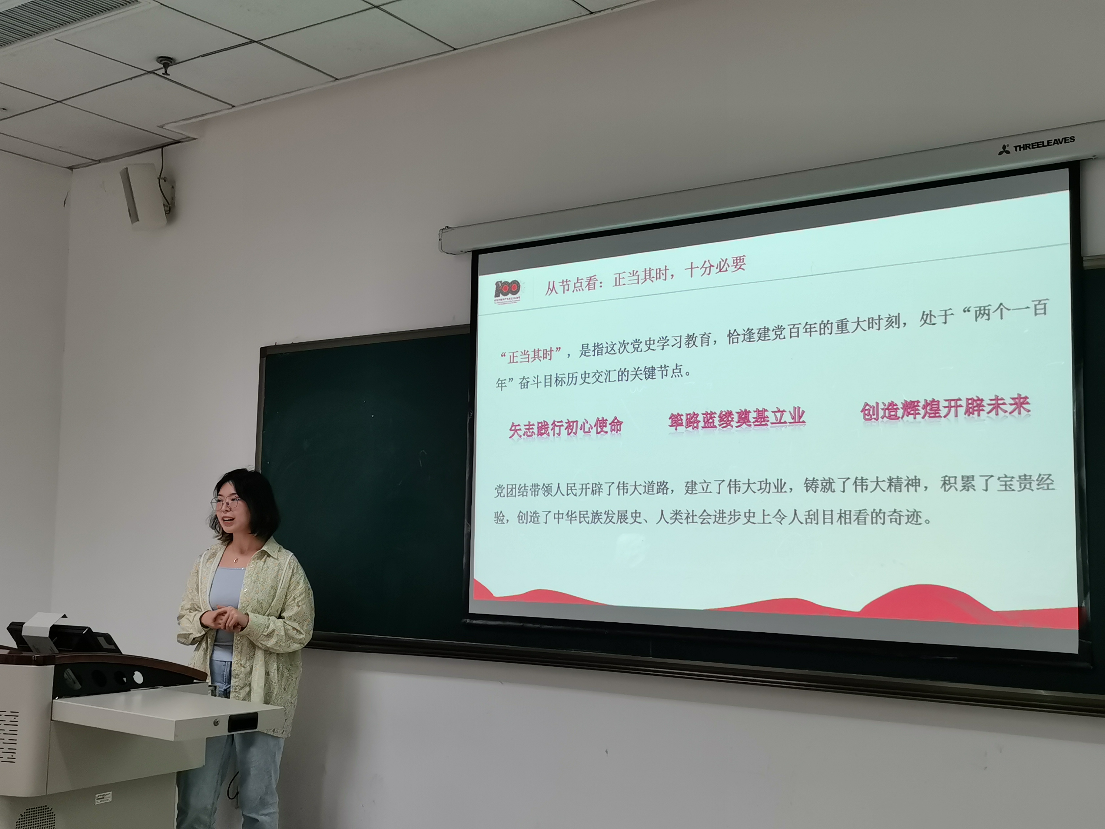 宣讲会上,陈姝君围绕“党史学什么和何时提出”的问题讲述学党史的背景;陈悦从传统、节点和个人三个层面阐述了为什么要学习党史的问题;代宇航根据中国共产党经历的四个时期提出了如何看待百年党史的问题;彭关奇从研究生的角度提出学习党史的要求;张文静和王金燕从“百年未有之大变局的提出和百年党史为应对百年大变局提供的条件”出发,阐明了党史与百年大变局的关系。