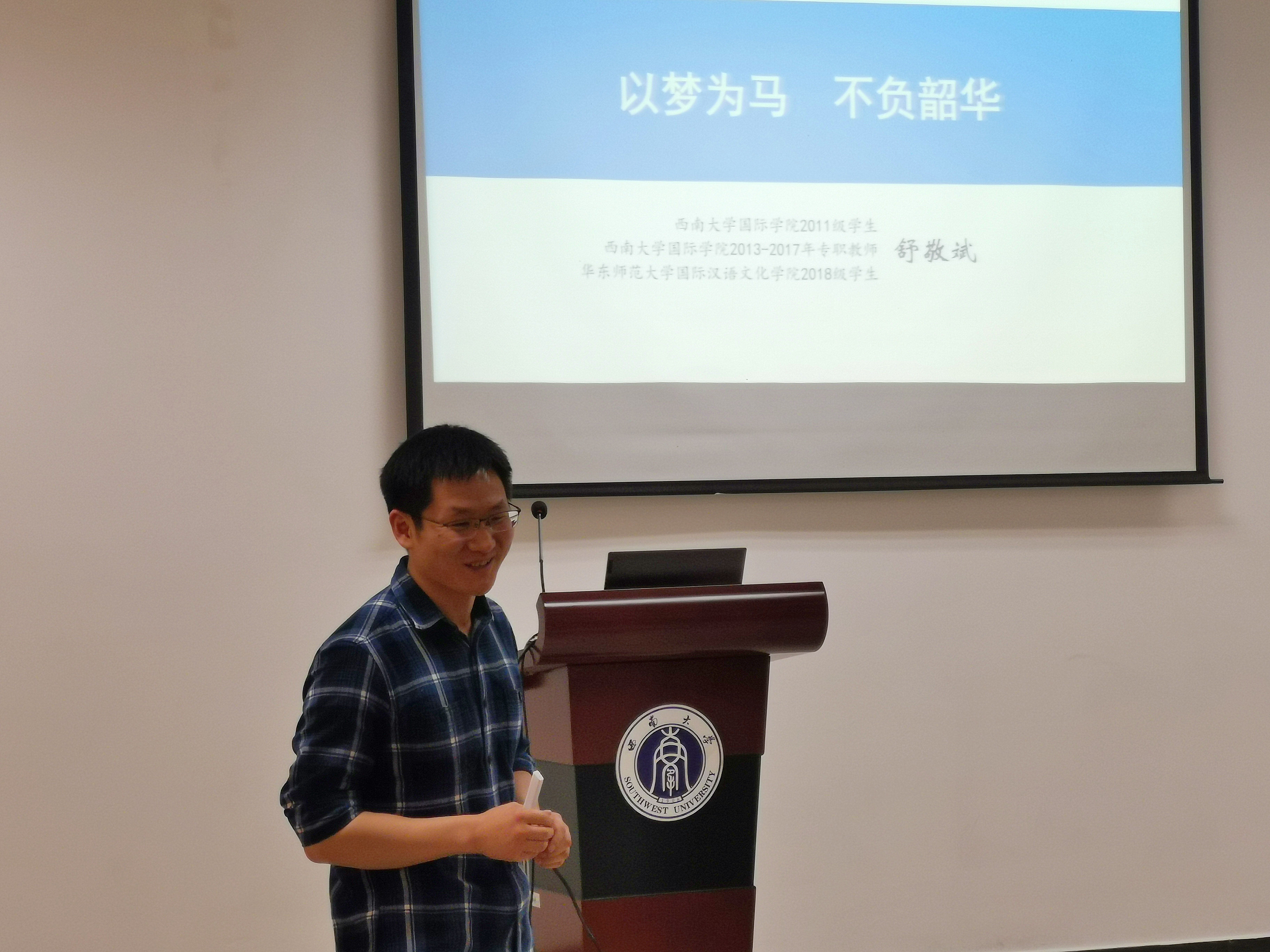 2021年4月29日,suncitygroup太阳集团“缙云知华大讲坛”第五期学术沙龙在紫云楼317教室如期举行。本次沙龙邀请到suncitygroup太阳集团汉语国际教育2011级硕士毕业生、华东师范大学汉语国际教育博士研究生舒敬斌主讲,公司部分教师代表、2020级博士研究生及在校中国研究生全程参与。讲座由汉语国际教育系主任杨甜副教授主持