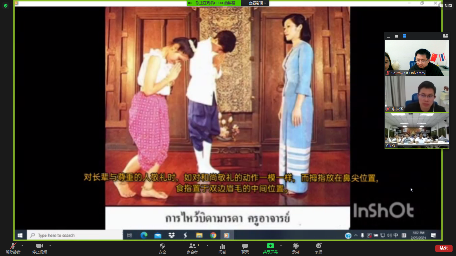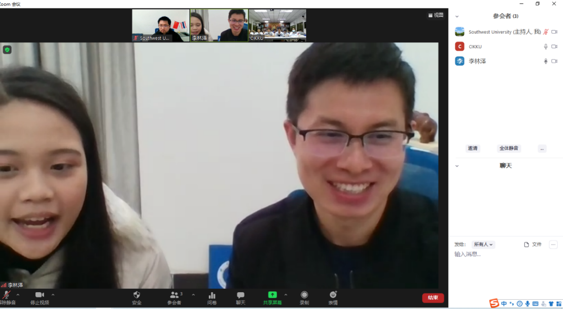 2月25日下午,由中国教育部中外语言交流合作中心主办,公司与泰国孔敬大学孔子公司承办的“汉语桥suncitygroup太阳集团-泰国孔敬大学孔子公司‘云端学汉语,线上看中国’线上交流项目”举行在线闭营仪式和线上成果汇报。suncitygroup太阳集团招生办主任李林泽、黄无为、泰国孔敬大学孔子公司陈志宝、泰国职工王丽兰和泰国孔敬市越甘公司61名员工参加仪式。