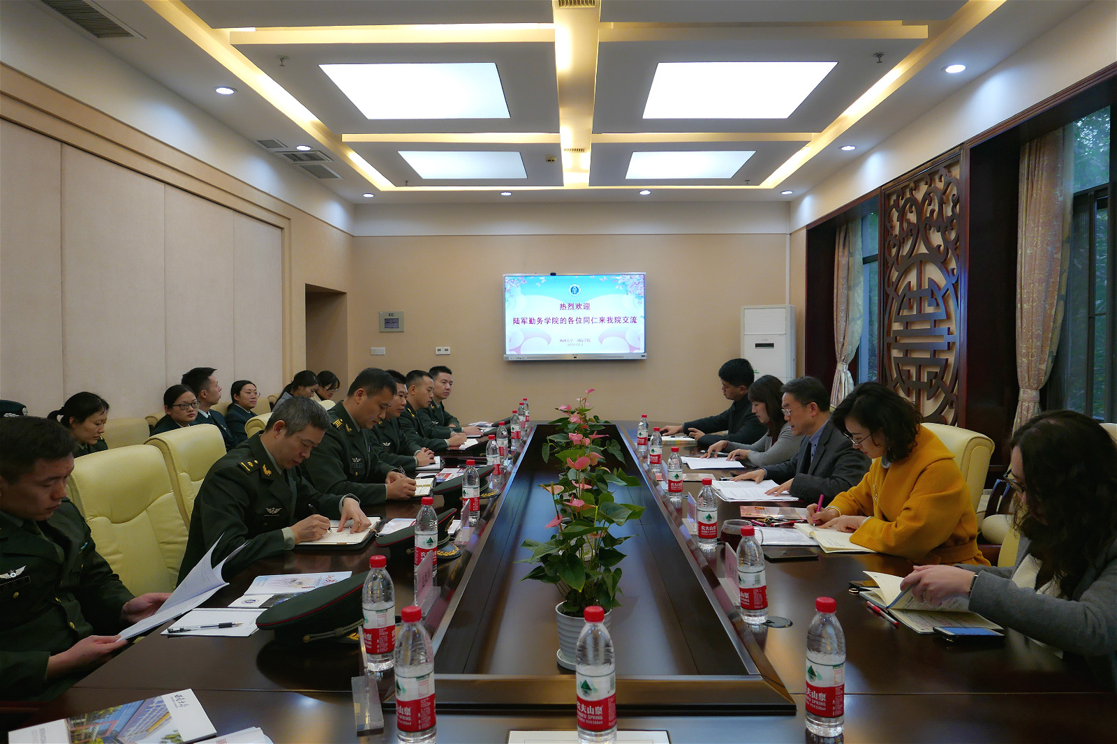 11月4日上午,解放军陆军勤务公司外训大队大队长吕绍旭、政委谭小春等一行27人来访公司,调研来华职工教育管理工作,党总支书记刘猛、相关科室负责人参加座谈交流。