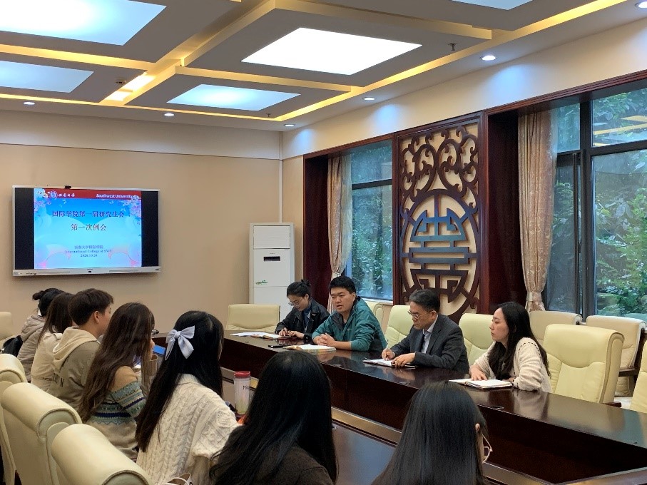 刘猛书记以自身经历为研会成员做了分享。指出,研会应发挥自身桥梁作用和服务功能,连接校院、师生,反映真实情况,为师生提供帮助。开展工作时,首先要树立学习、调研意识,形成严谨真实的工作作风,促进中外人文交流;其次应解放思想,创造性地开展工作;最后要明确个人身份定位,研会成员既是服务大家的工作者,也是自我发展的受益者。