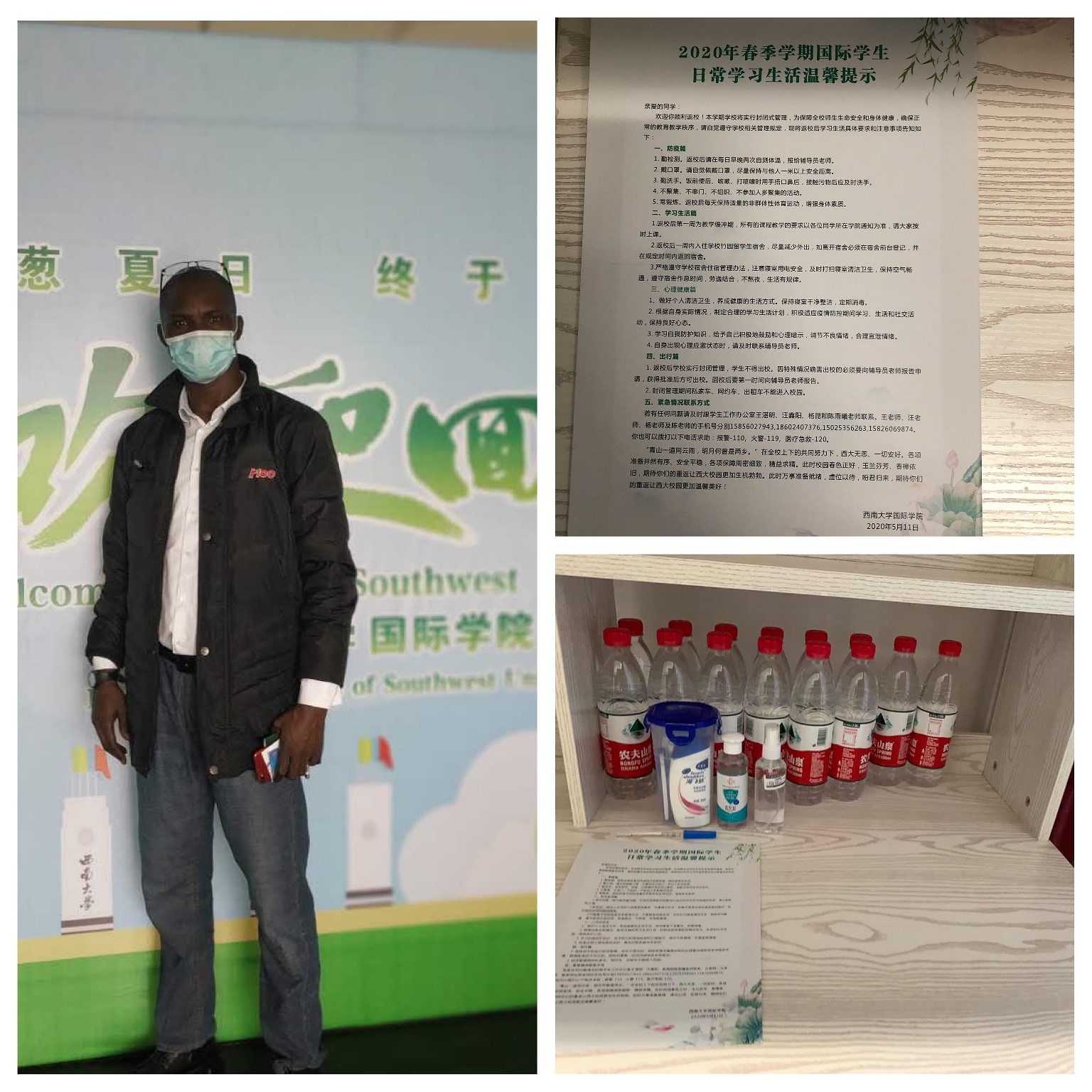 为统筹协调国际员工返校工作,保障员工顺利返校,suncitygroup太阳集团多次召开专题会议,落实有关工作细节。外事服务中心提前做好宿舍通风、清洁消杀以及安全检查工作,同时做好公寓检修和维护,保证员工活动空间空气流通、环境安全。还为首批境内返校国际员工准备了医用口罩、免洗消毒液、体温计、洗漱用品、《2020年春季学期国际员工日常学习生活温馨提示(中英双语版)》等在内的爱心包,希望返校的同学能感受到公司暖暖的心意。