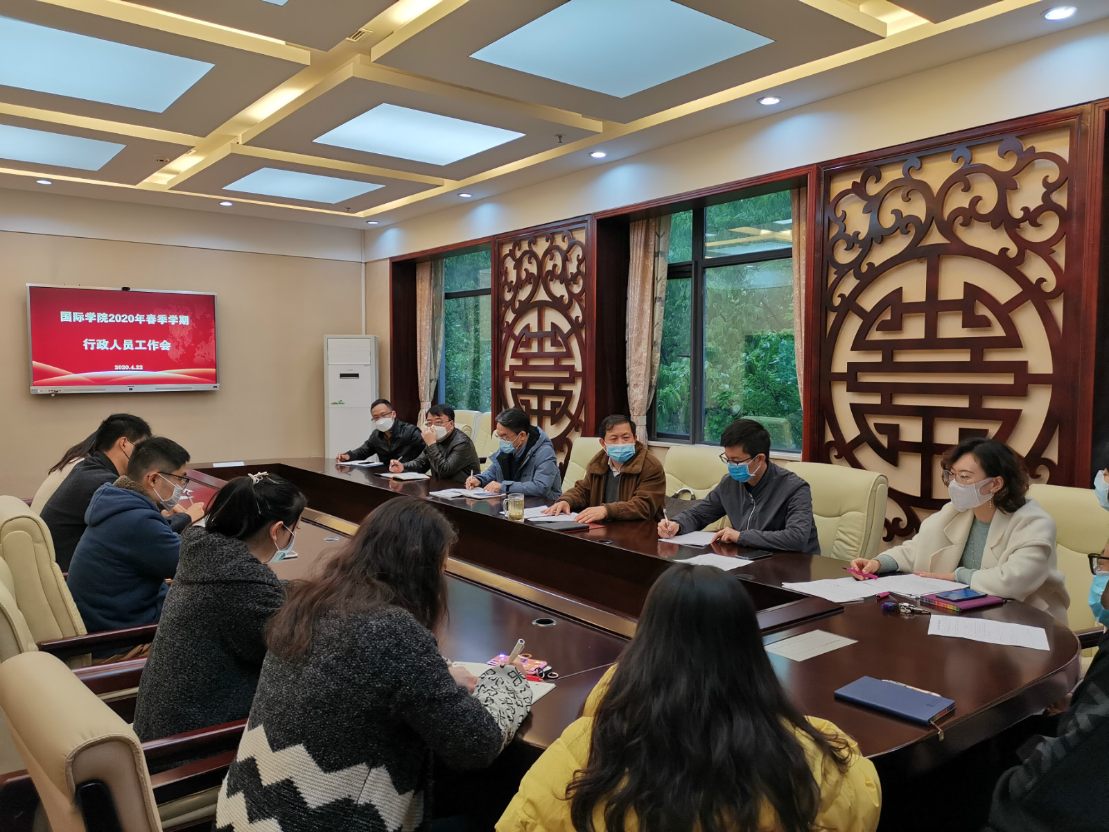 4月22日上午9点,公司在紫云楼签约室召开2020年春季学期行政人员工作会,刘猛书记主持会议。