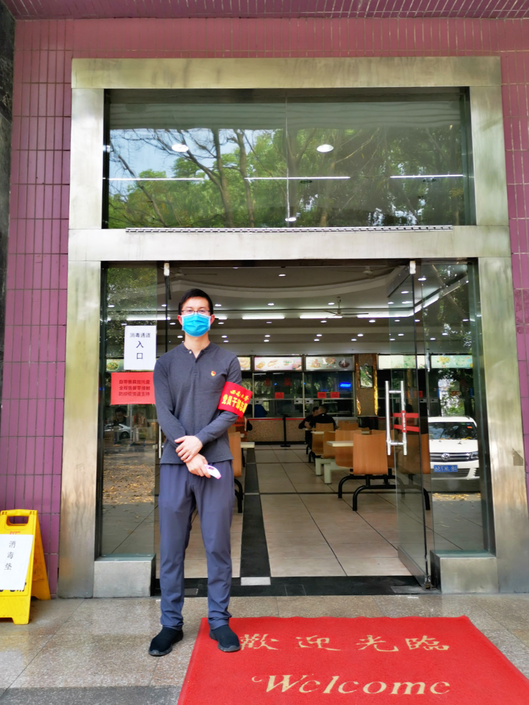 王鹊,公司招生办公室工作人员,中共党员。他负责的是在教工食堂门口为就餐师生测体温,维持排队和就餐的秩序。他表示,“在公司有幸志愿参与这样一场在一生当中难得遇见的大事件,哪怕是在很小的一个岗位上做了很小的一件事情,也是感到很光荣的。中国终将获胜,人类终将获胜。”