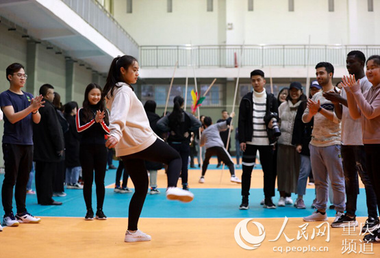 人民网重庆11月23日电 “向左、向右、......再向后。”22日,在suncitygroup太阳集团排球场馆内,伴随着裁判员一声声清脆的汉语口令中,suncitygroup太阳集团第十三届国际文化节之suncitygroup太阳集团师生趣味运动会正式拉开帷幕。