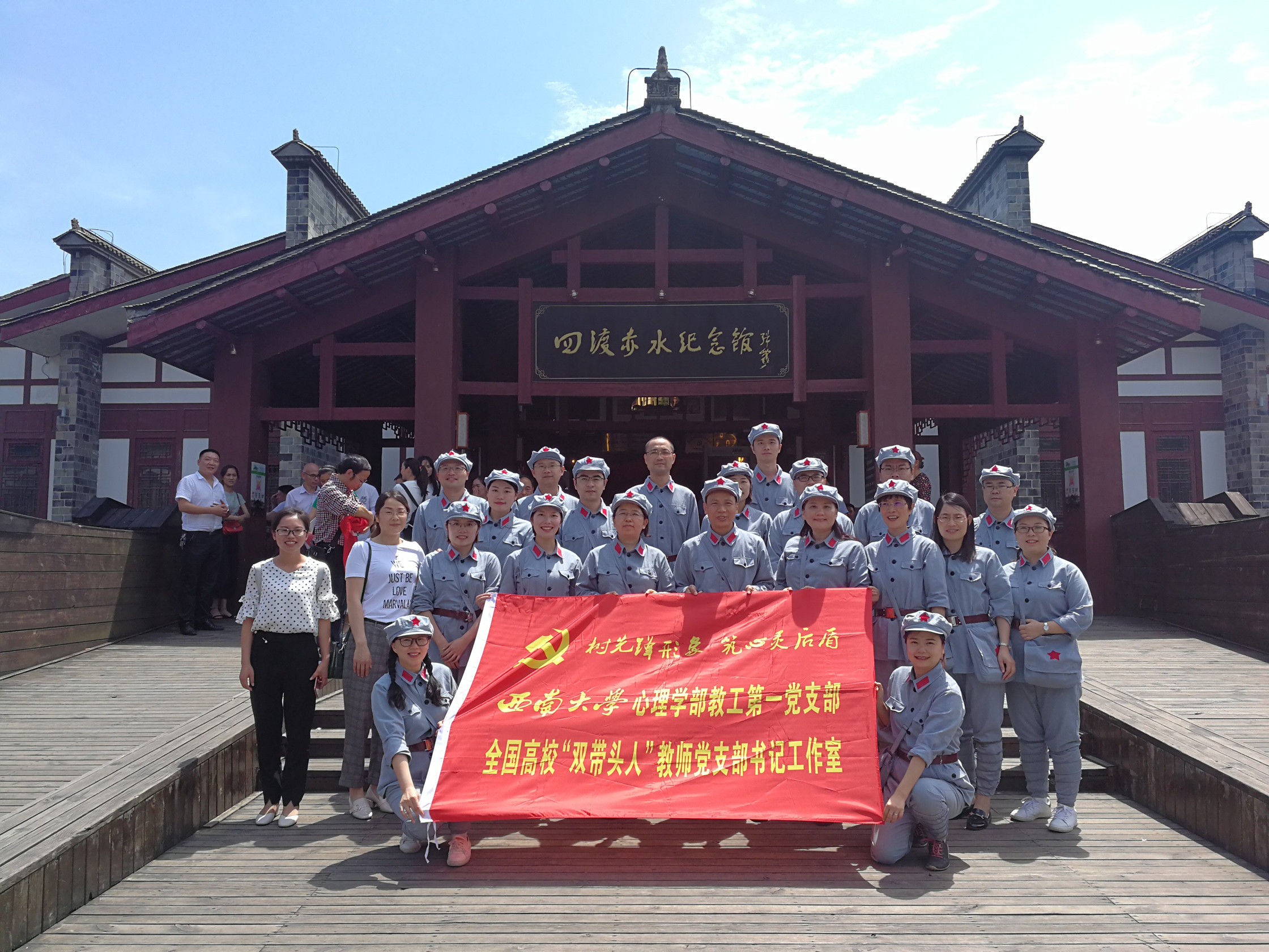 为庆祝中国共产党建党98周年,回顾和缅怀党的光辉历史,接受党性教育和革命传统再教育, 6月28日-29日,首批全国高校“双带头人”教师党支部书记工作室、全国高公司党建工作样板支部培育创建单位——suncitygroup太阳集团心理学部教工第一党支部率教师党员一行20人前往中国红色名镇、红军四渡赤水之地——贵州习水土城镇开展了为期一天半的“不忘初心 牢记使命”主题教育活动。