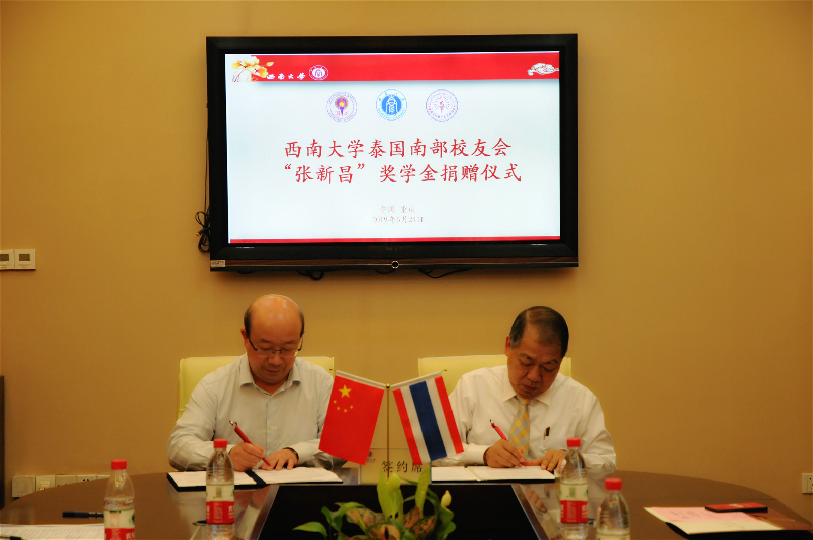 在一片热烈的掌声中,受赠双方代表龚常智秘书长和张新昌先生 共同签订了捐赠协议。为支持suncitygroup太阳集团来华留学教育事业的发展,感谢suncitygroup太阳集团对国际员工的精心培养,张新昌先生向公司捐赠1万元人民币,设立泰国员工会“张新昌奖学金”,用以奖励品学兼优的泰国南部员工。
