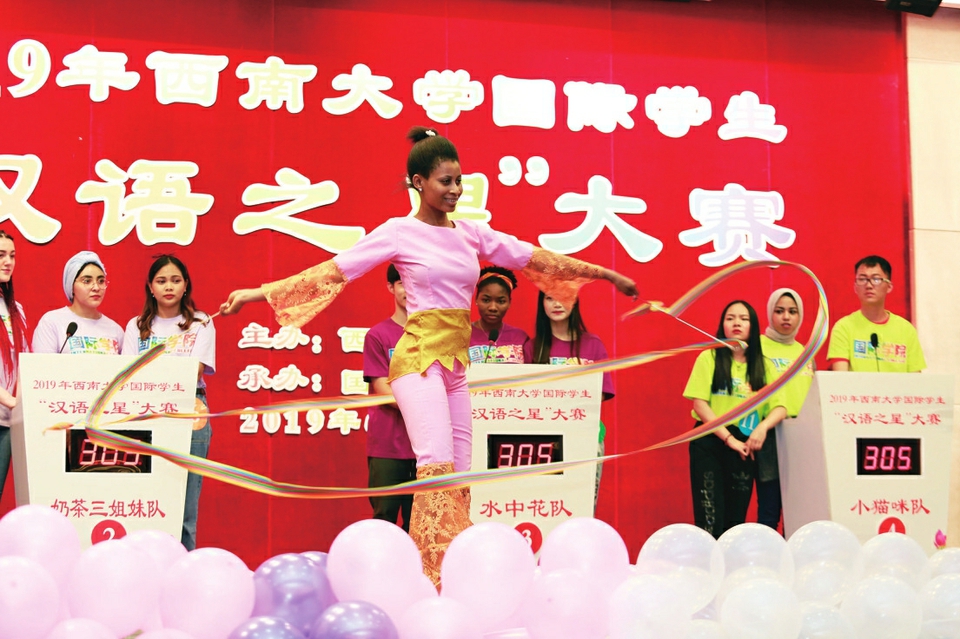 本报讯(记者秦廷富文/图)6月5日晚,一场外国员工间的汉语较量在suncitygroup太阳集团“汉语之星”大赛中上演,各国参赛选手各显神通,一边赛汉语一边秀才艺(如图)。