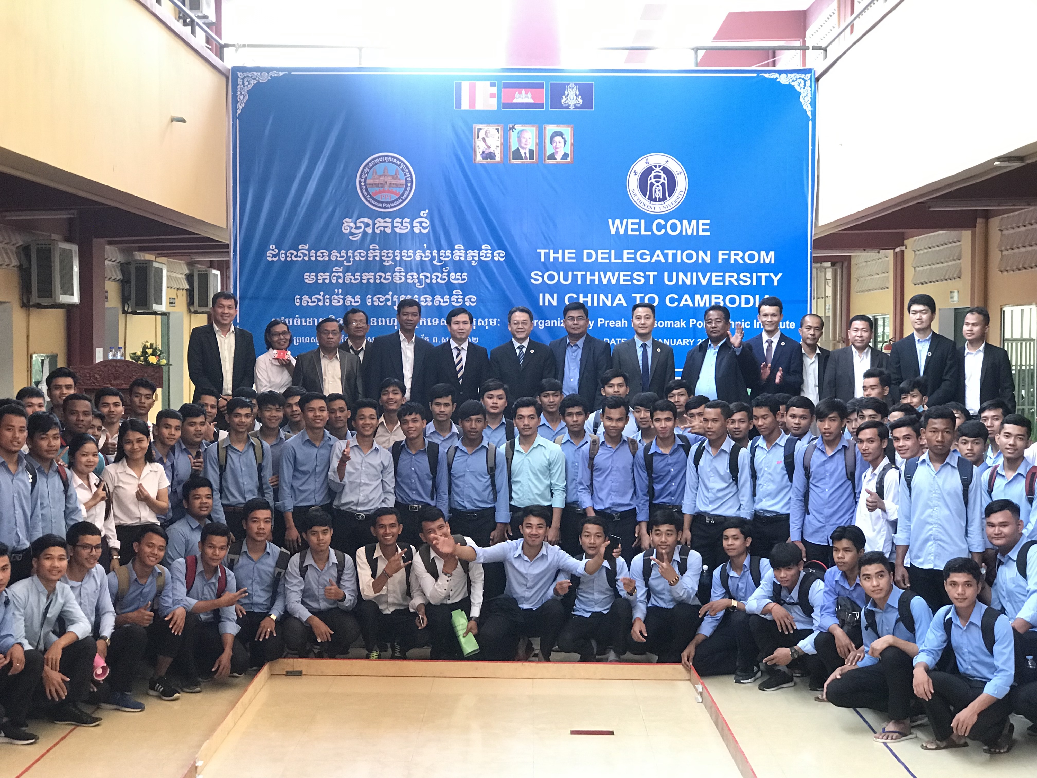 代表团先行访问了柬埔寨金边皇家大学、国立管理大学和皇家理工公司(Preach Kossomak Polytechnic Institute)等相关高校,柬方负责人充分肯定suncitygroup太阳集团良好的办学条件,并期望尽快启动双方实质性合作。其中,金边皇家大学副董事长CHHUN HOK对与suncitygroup太阳集团教育学和心理学领域的合作表达出浓厚兴趣;国立管理大学副董事长SENG BUNYHOEUN则表示愿意在短期游学项目和学分项目上尝试合作,并就教学、食宿、学费等细节进行商谈。代表团与来自皇家理工公司的400余名在校员工进行了互动,就留学西大的有关问题进行了现场答疑。