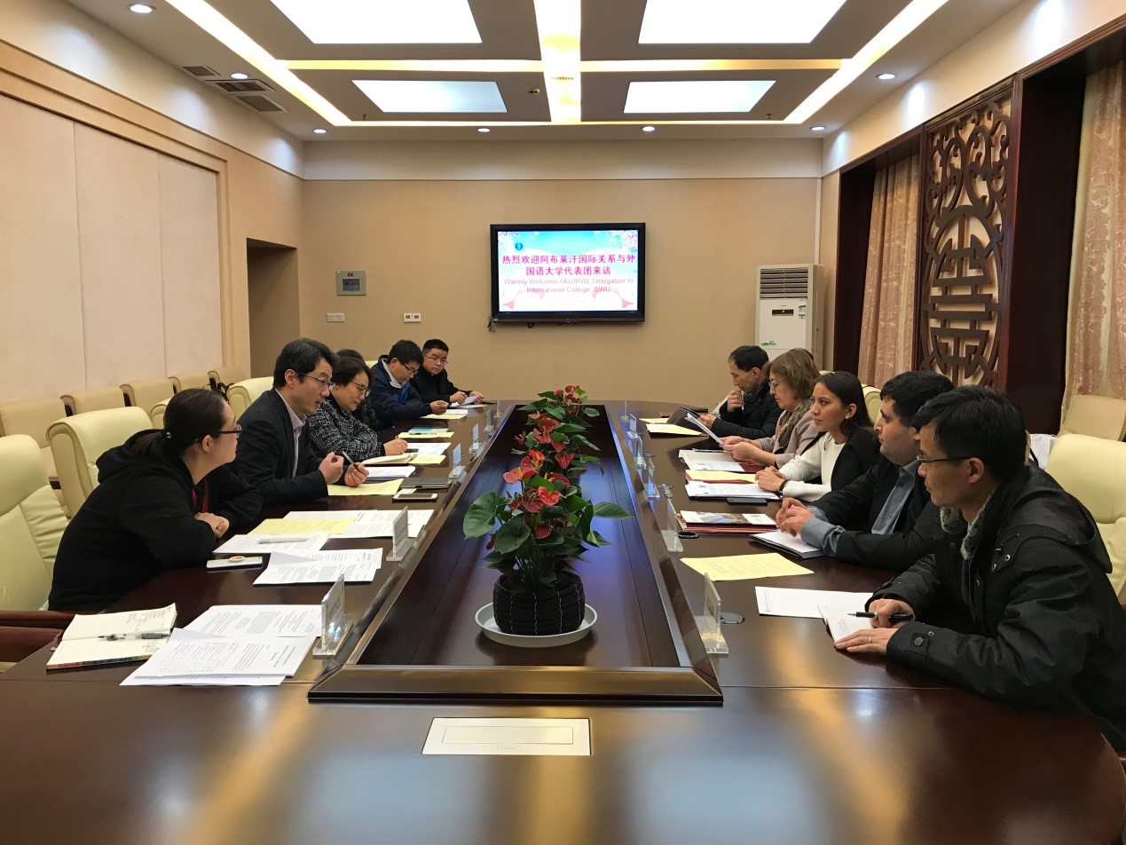 12月6日,哈萨克斯坦阿布莱汗国际关系与外国语大学代表团一行六人来院访问并与suncitygroup太阳集团、教务处、经济管理公司、政治与公共管理公司相关人员举行务实会谈。会议由suncitygroup太阳集团副经理李航主持。