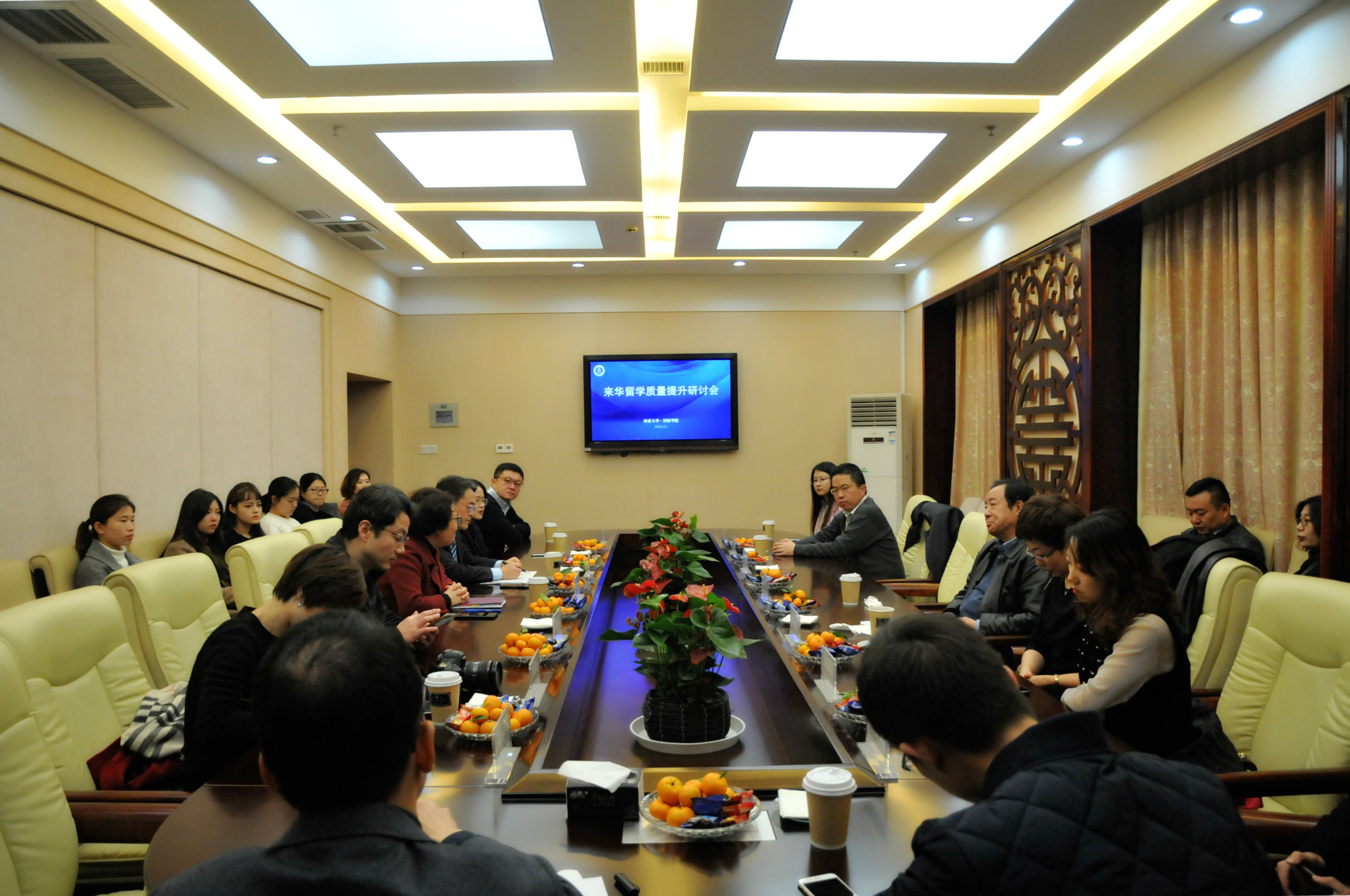 2018年12月1日上午,来华留学质量提升研讨会在suncitygroup太阳集团签约室举行,来自全国13所高校的30余名留管干部参加会议。会议由王静经理主持。