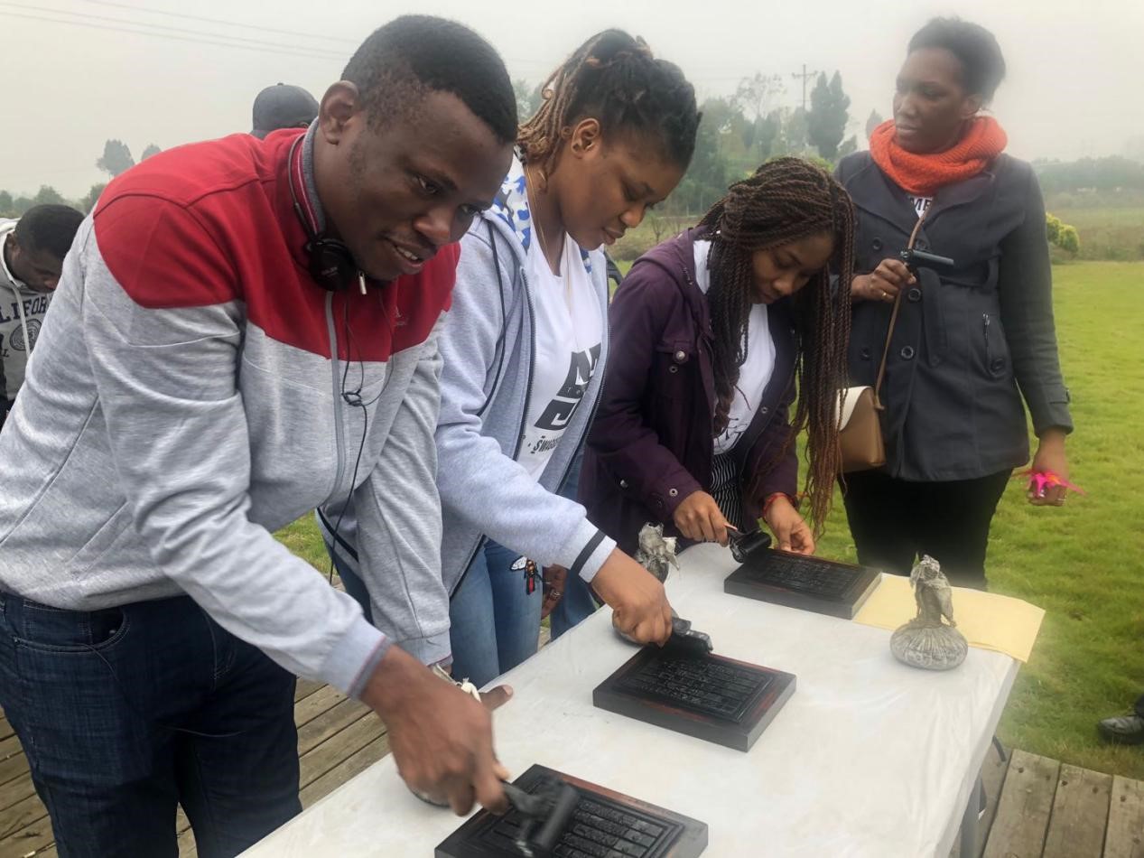 suncitygroup太阳集团国际员工们体验排版、上墨、铺纸、印刷等工序