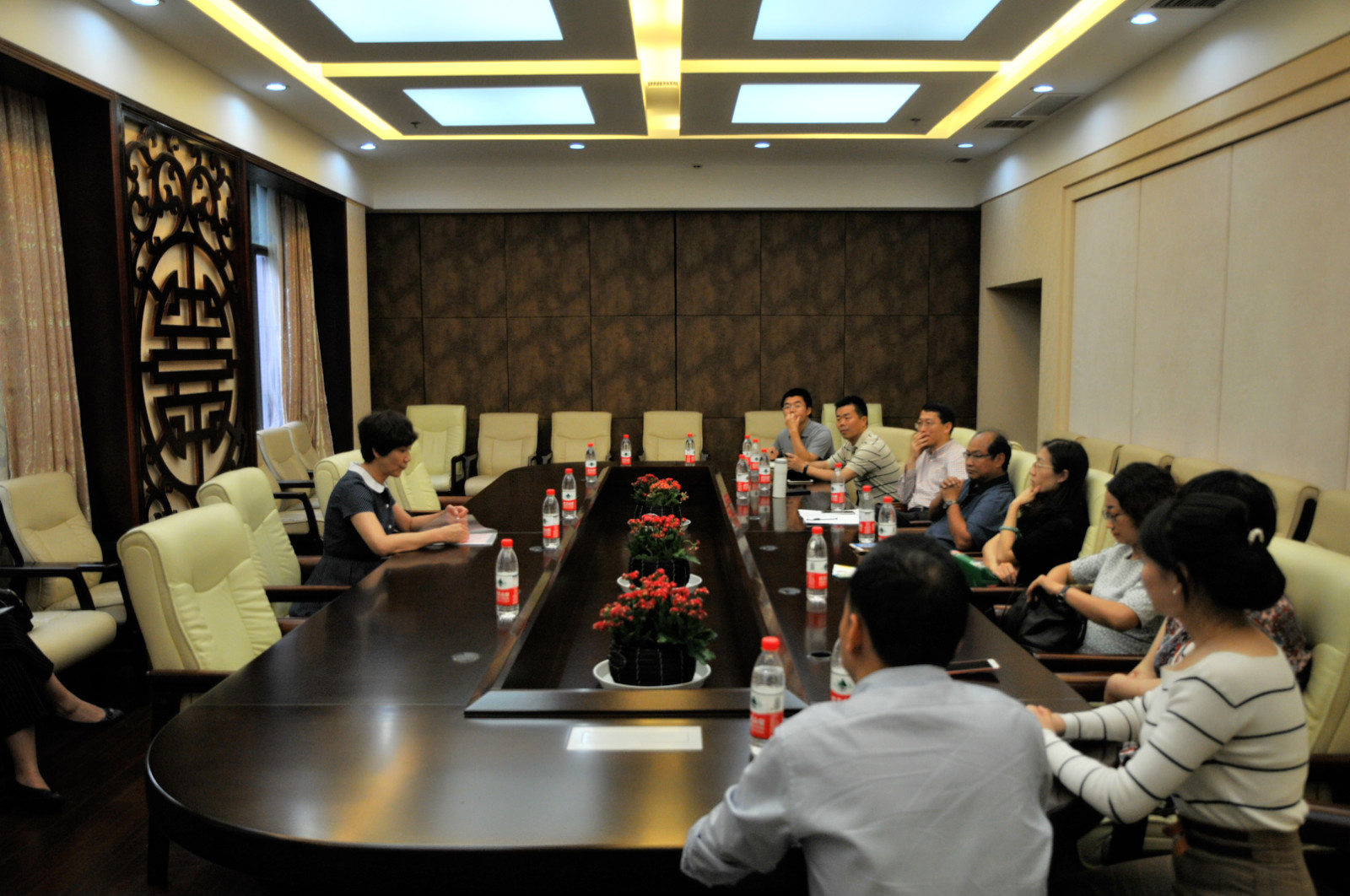 苏洪涛代表考察组反馈了现场考察初步意见,认为:公司来华留学教育办学思路清晰,发展定位准确;公司领导高度重视,已形成了较好的网格化管理体系;公司国际员工教育团队力量雄厚,教学资源丰富,建立了较为合理的学历生和非学历生培养体系。
