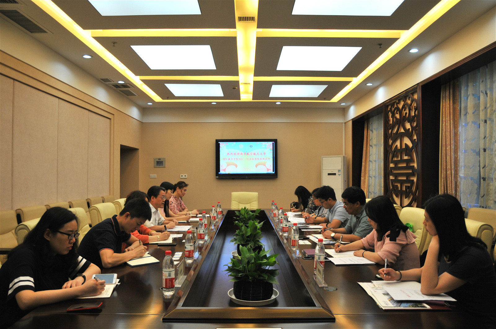 首先,王静经理对南京航空航天大学同行来访表示欢迎。刘猛书记介绍了suncitygroup太阳集团的历史和现状,对suncitygroup太阳集团职能设置、运行模式及人员配备情况进行了说明。李林泽介绍了职工的招生情况,陈雨曦介绍了职工的日常管理模式和基本经验,杨凌霄就职工教学管理进行说明。最后,王静经理介绍了公司对职工工作的经费投入,经费运行和设备配备情况。