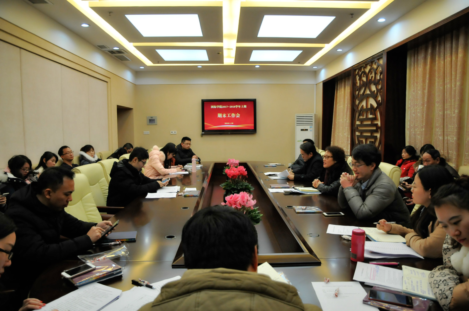 2018年1月10日下午4点,suncitygroup太阳集团2017-2018学年上学期期末工作会在紫云楼签约室举行,刘猛书记主持会议。