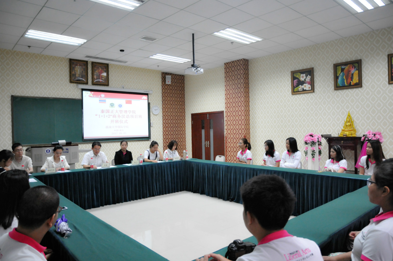 公司与泰国正大管理公司实施的本科员工“1+1+2”联合培养项目已有六年。该项目立足于提高员工以汉语为工具进行国际商务活动的能力,培养优秀的跨文化交际商务人才。今年来自泰国正大管理公司的这14名员工将在公司完成1年的专业学习和4个月的在岗实习。