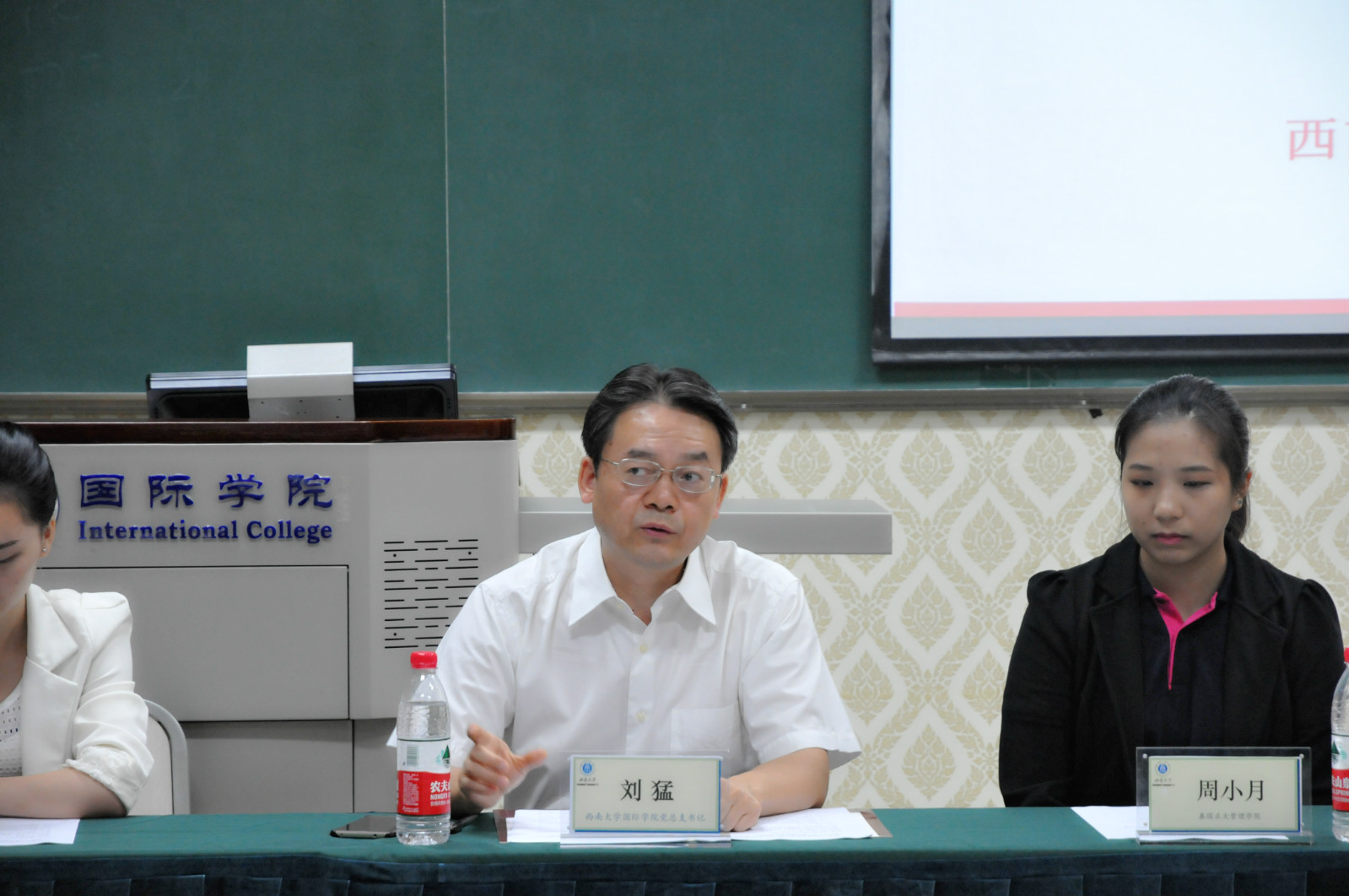 随后刘猛书记与泰国正大管理公司周小月老师互赠礼物,具有中泰特色的礼物传递着两校师生浓浓的情谊。我们期待双方能在更多领域加强合作、结出硕果,也希望这些员工能在西大放飞梦想,学有所成。