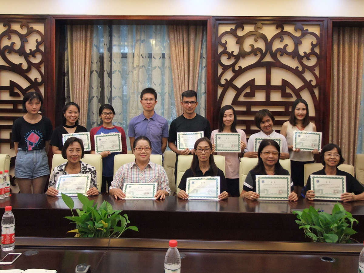 团员代表Supapit女士发言。她说,非常感谢suncitygroup太阳集团各位老师的辛勤付出,和对各位团员的精心照顾。大家都觉得此次考察学习非常不容易,收获也非常丰富。作为员工,她回到母校感到非常开心和激动。作为泰国的汉语教师,她希望在未来能够带领自己的员工来到suncitygroup太阳集团学习和交流。衷心感谢各位老师、各位志愿者在暑假中冒着酷暑安排如此丰富多彩、富有意义的交流考察项目。