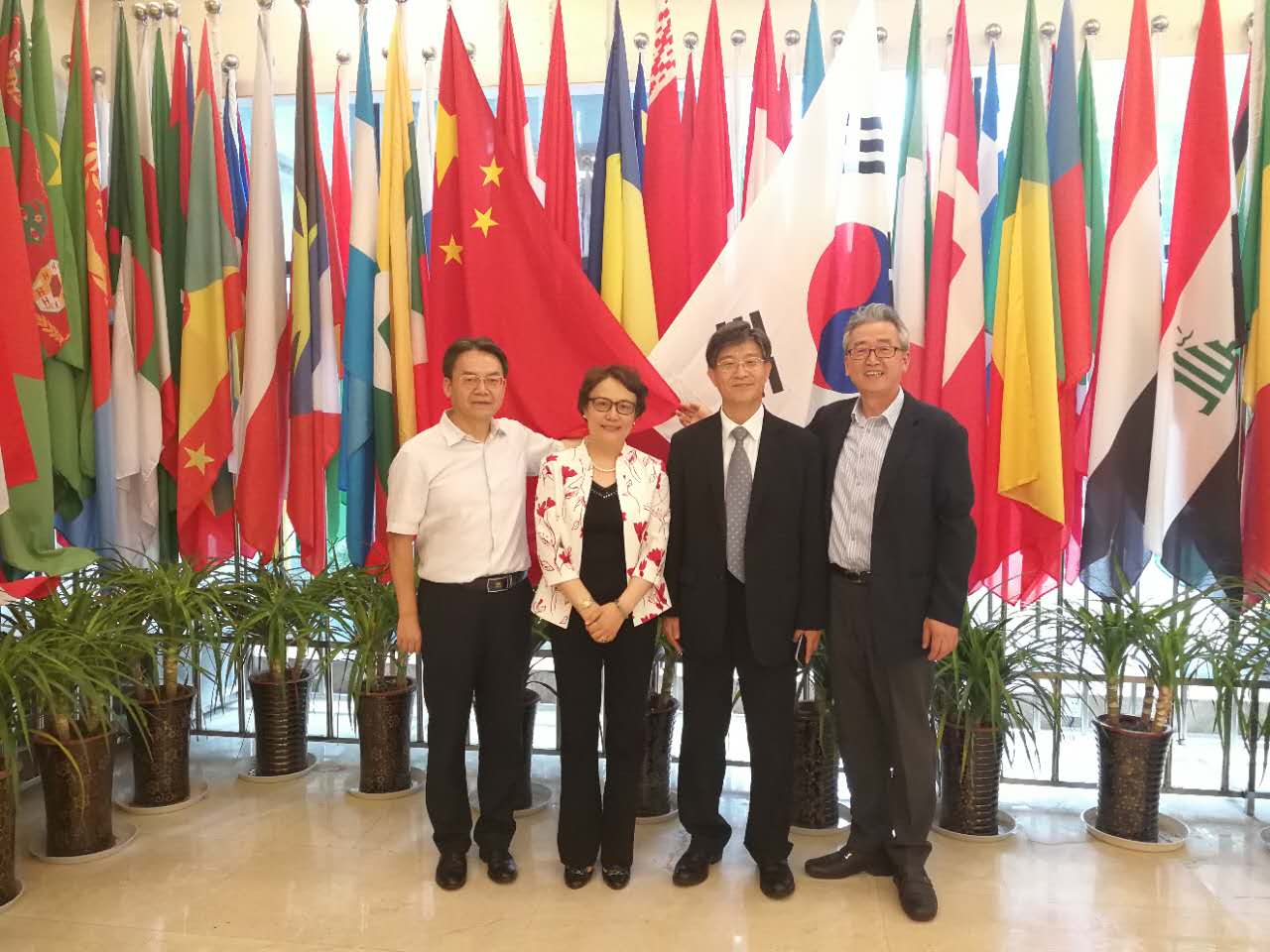 2017年6月19日,韩国蔚山大学全球营销专家培训中心所长李相度教授、电气工公司经理梁明国教授一行来校访问,并与公司电子信息工程公司、校地合作处和suncitygroup太阳集团洽谈合作项目。