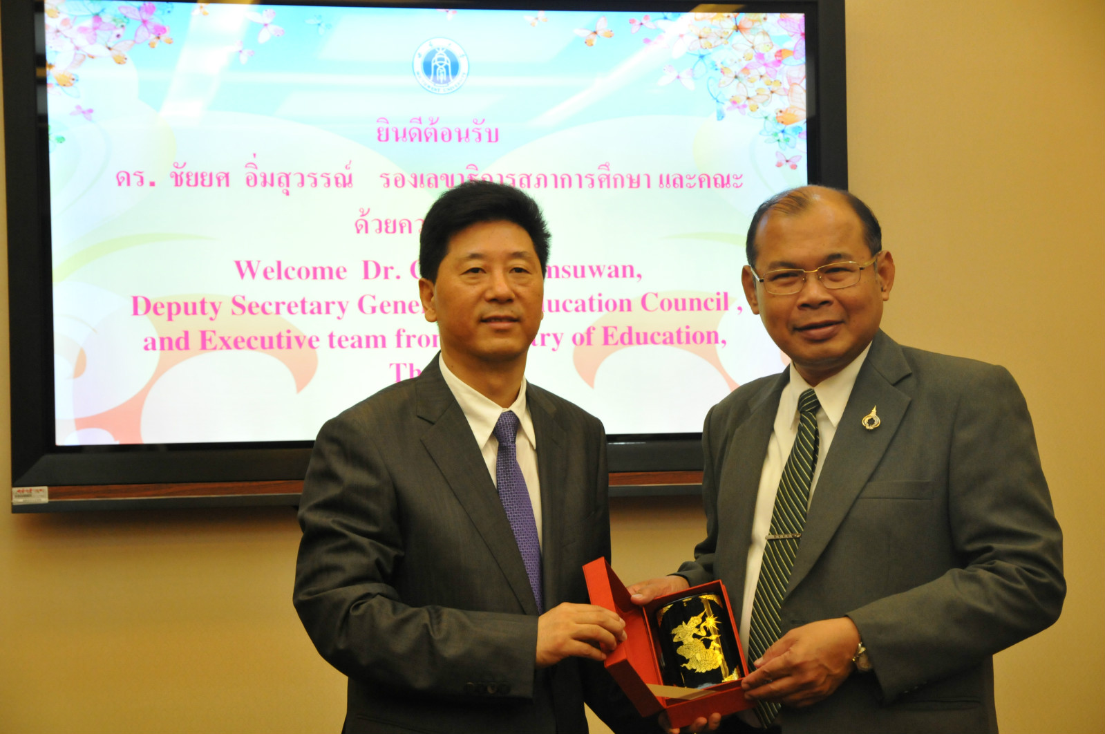 副次长CHAIYOSH IMSUWAN先生感谢靳董事长的热情欢迎,并表示中国的教育改革已进行多年,取得的成就令人瞩目,此次访学主要就是来认真学习、仔细考察、深入交流,充分借鉴公司和中国的成功经验,增进双方教育合作和交流。