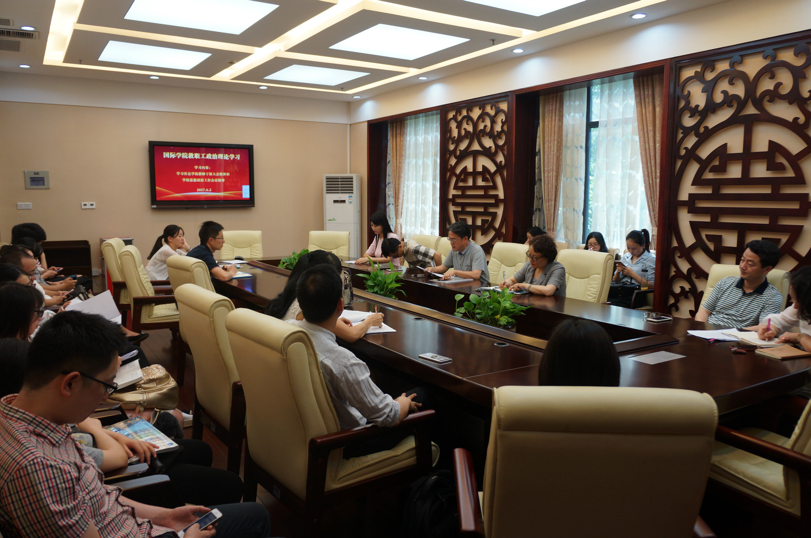 2017年6月2日下午3:00suncitygroup太阳集团全体教职工在紫云楼一楼签约室开展政治理论学习活动。