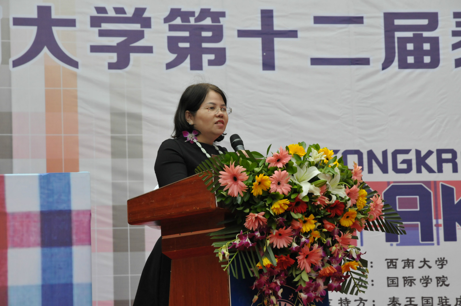 董事长助理王进军教授在致辞中代表公司向出席活动的各位领导和来宾表示欢迎。他谈到公司举办宋干节的初衷,不仅是为了给来自五湖四海的同学们呈现一个泰式风情新年,更是为了给所有在校的泰国同学留下一份美好的回忆,传达公司对他们的无限关爱和祝福,希望泰国同学在泰历新年努力奋斗,为中泰文化交流做出贡献。