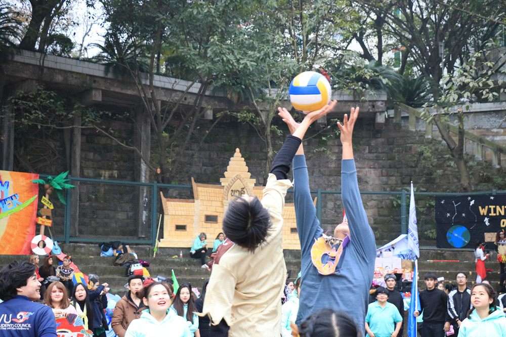 午饭时间,来自泰国孔敬大学的员工们主动为大家献上歌曲和舞蹈节目,把全场气氛都烘托得格外热闹。下午比赛继续,相继举行了排球决赛、拔河比赛、水球比赛、足球友谊赛等四个项目。