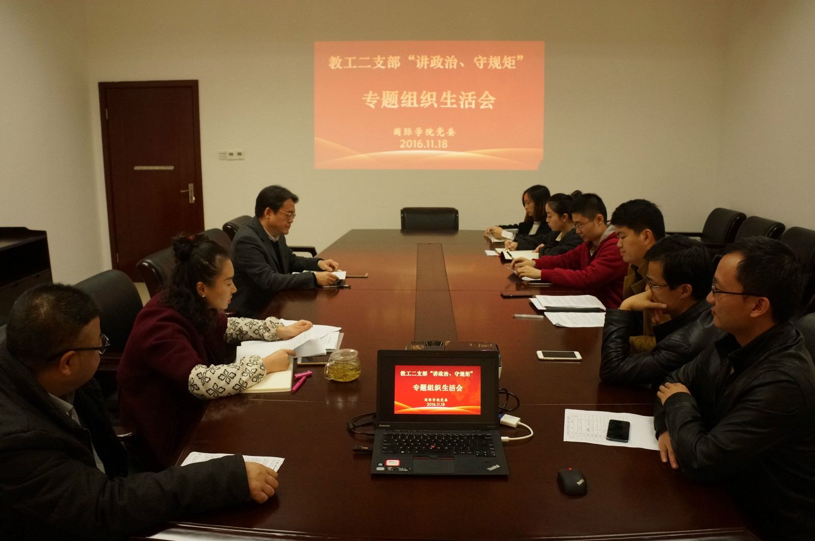 2016年11月18日公司党委开展了“讲政治、守规矩”专题组织生活会。根据公司党委下属各支部实际工作学习的安排,本次专题组织生活会分为教工一支部、教工二支部、研究生支部三个会场分别在紫云楼304会议室开展。
