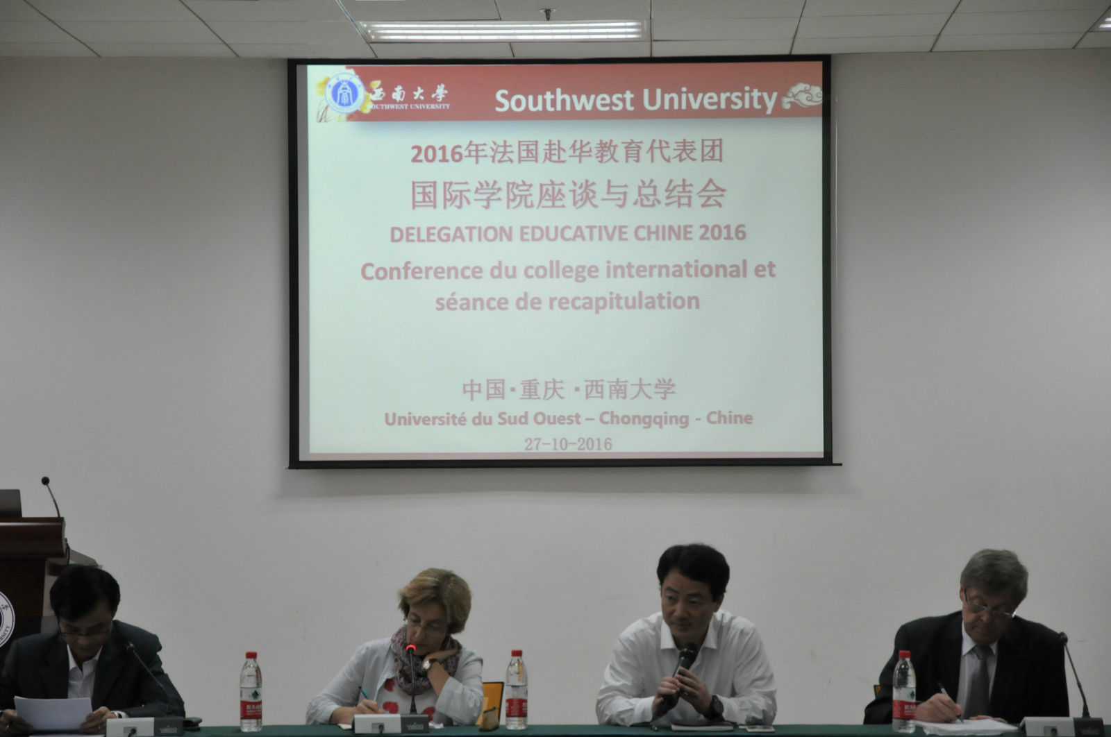 李航副经理及代远鸿、耿军等科室负责人和法国赴华教育代表团就本次访华事宜以及suncitygroup太阳集团教学管理、对外事务交流、文化交流等方面的工作展开了深入的交流和讨论;就双方进一步合作的空间和内涵展开了积极的探索。
