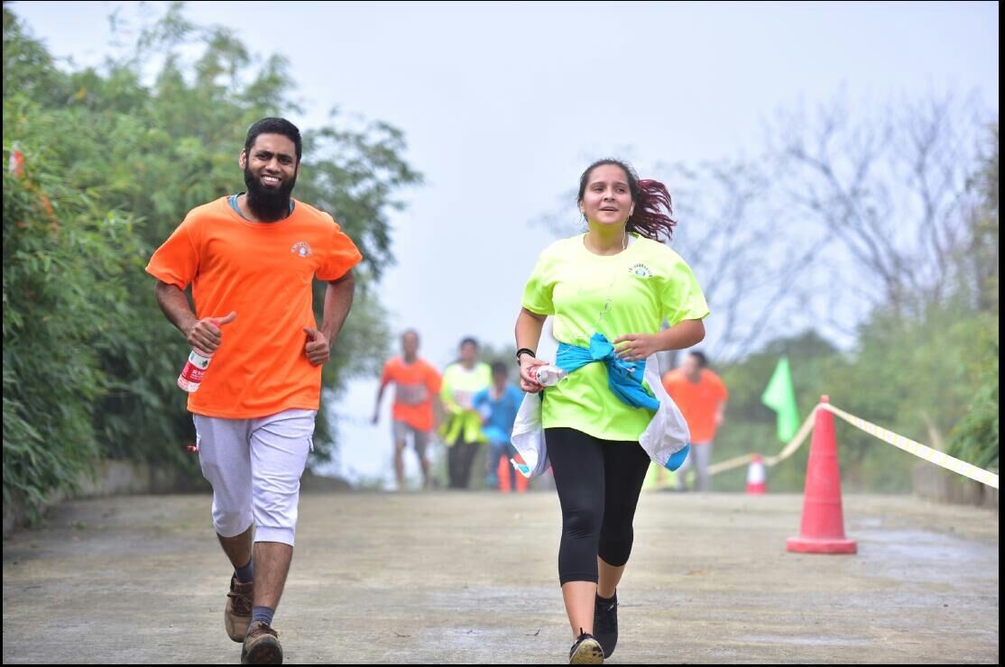 此次越野乐跑设在风景优雅、诗意盎然的华蓥山旅游景区,途经云鹤楼、双枪老太婆塑像、万狮朝圣、天池湖等多个景点,全程共计五公里。参赛者在挥洒汗水的同时,尽情领略了华蓥山雄、奇、秀、险的优美景色。然而,盘旋起伏的道路和山顶稀薄的空气,给初次参加山地马拉松的职工们带来了不小的困难。一路上,同学们相互勉励扶持,最终19名职工全数完成赛程,顺利到达终点。