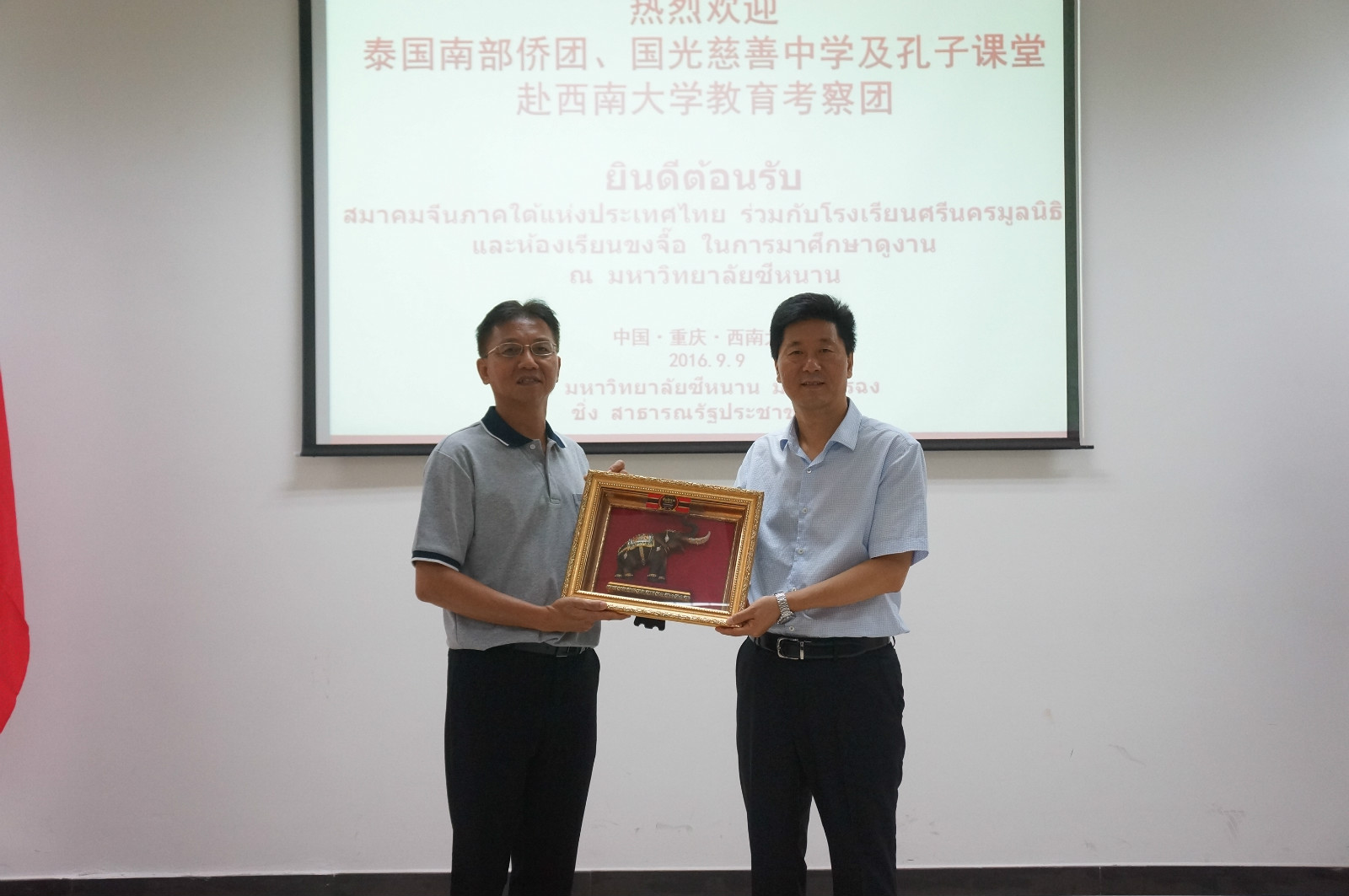9日上午,suncitygroup太阳集团为泰国教育考察团的到访举行欢迎会,副董事长靳玉乐出席并致辞,对考察团的到来表示热烈欢迎,向泰国客人全面介绍了公司的发展与现状,表达了与泰国南部地区增进交往、扩大合作的意愿。考察团团长、国光慈善中学法人代表方木基博士致答谢辞。他说,泰南侨领高度重视华文教育,以国光中学为代表的泰南华校百年来克服千难万阻,为在泰华人华侨子弟提供汉语和以汉语授课的其他课程,期待本次访问能引进更多suncitygroup太阳集团优质教育资源,结合现有孔子课堂平台优势,进一步拓展合作的深度和广度。员工总会龚常智秘书长也应邀致辞,他感谢suncitygroup太阳集团泰南员工分会为双方合作和本次考察团赴suncitygroup太阳集团访问所做的大量工作,感谢泰南侨团领袖方志雄先生慷慨捐资,设立“suncitygroup太阳集团方志雄奖学金”。教育学部、音乐公司、suncitygroup太阳集团、以及国际合作与交流处负责人参会。