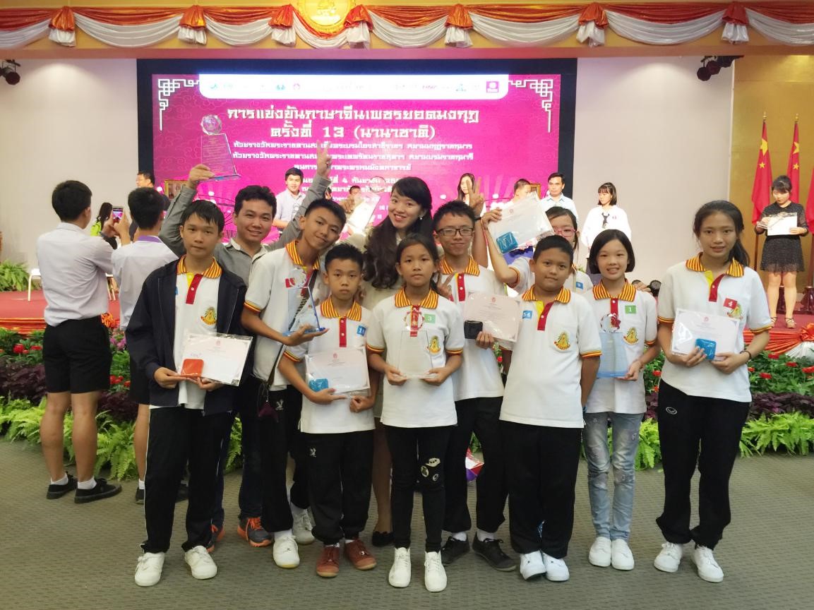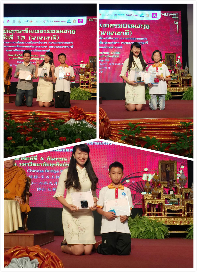 2016年9月4日(泰历2559.9.4)在曼谷博仁大学举行的泰国第13届“汉语桥——宝石王杯”国际汉语大赛中,今年共有3577名选手参加此次大赛,美赛光明华侨公学共选派了9名参赛选手赴曼谷参赛。此赛事是泰国最高规格的汉语大赛,得到泰国王室的支持,以及赵昆通猜副僧王的奖学金支持。赵昆通猜副僧王、中国银行曼谷分行行长张雷等领导及贵宾亲临比赛现场主持开幕式并观摩了比赛。