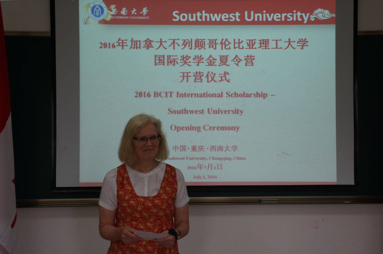 加方领队教师Patricia致答谢辞,她一一介绍了BCIT师生,感谢suncitygroup太阳集团为游学中国的BCIT师生所做的一切。她表示,此次为期二周的suncitygroup太阳集团之行一定能够帮助BCIT师生们更多地认识中国的历史与文化,了解重庆这座世界闻名的山城,爱上美丽的suncitygroup太阳集团。