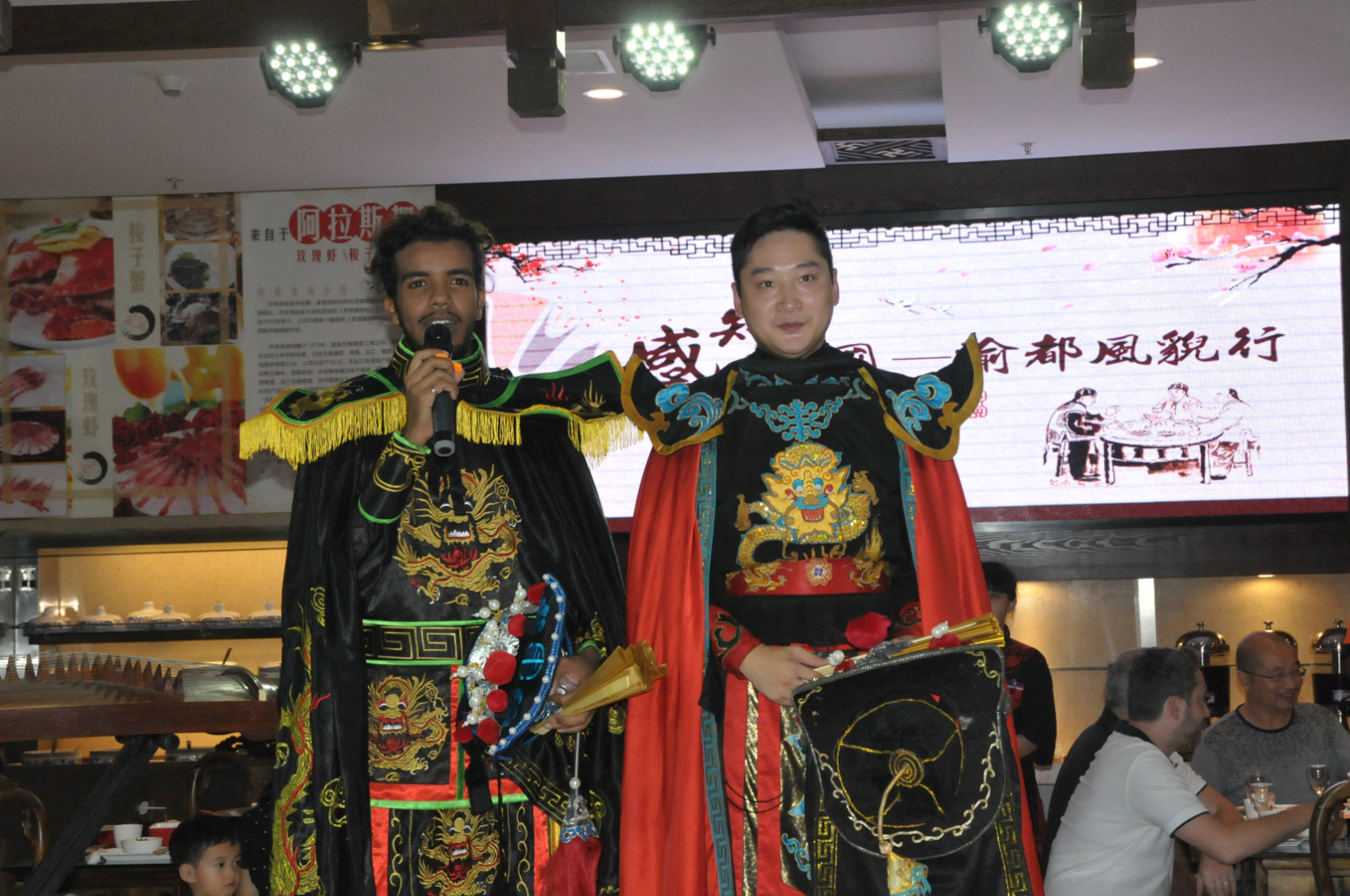 “小时候看过一部电影,就发现川剧变脸很有趣”。在自学的过程中,黄阿里也遇到了一些困难。“穿上变脸的服装会很闷,有的动作要领也需要有专业老师的指导”。这一次,黄阿里能和川剧大师同台表演,他表示很荣幸。今后,他也会将更多的中国优秀传统文化分享给自己国家的伙伴。