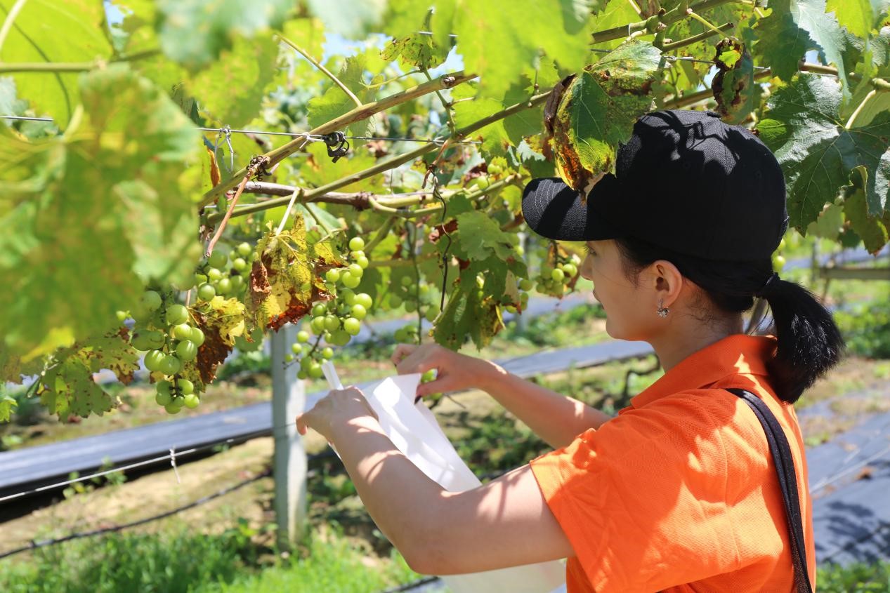 随后,职工们来到葡萄及水蜜桃种植园区,为即将成熟的水果进行套袋工作。经过园区技术人员的细心讲解和亲自示范,职工们也有模有样的开始套袋工作。贺西格德力格尔来自蒙古,是suncitygroup太阳集团国际贸易与经济系6班的员工,这是她第一次体验农作物生产,为此她显得很激动。