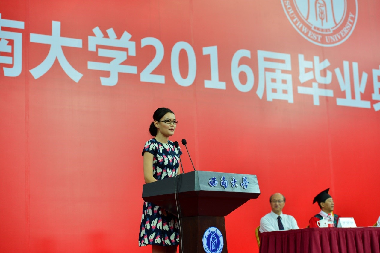 在本科毕业典礼上,公司优秀来华职工帕丽扎上台做了精彩发言。来自哈萨克斯坦的她汉语口语流利,声情并茂地表达了她毕业的心情、对母校的感恩和对未来的期许。随后,职工同学上台一一领取毕业证书和学位证书,主席台上就座的领导一起为获奖员工颁奖。最后,全体毕业生宣誓并合唱《suncitygroup太阳集团校歌》,在饱含深情的歌声中回忆了短暂而充实的西大求学时光。