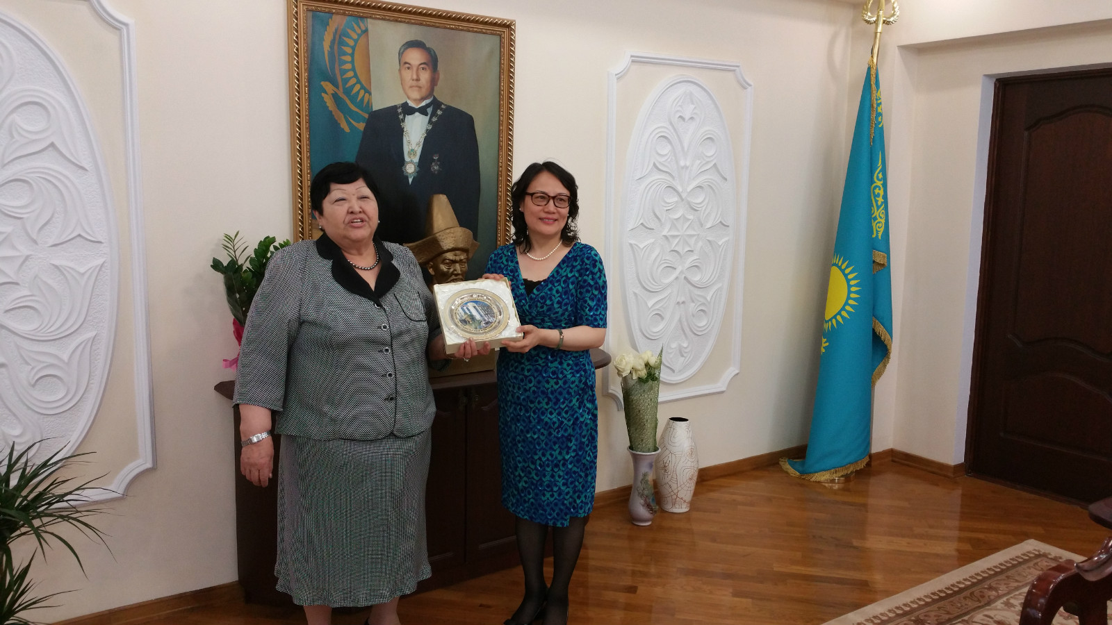 此次我们就与阿布莱汗国际关系与外语大学联合建立孔子公司与中国驻阿拉木图总领事馆相关领导进行了沟通,参加了公司在国际哈中语言公司建立汉语中心和汉语国际教育专业硕士教育实践基地的挂牌仪式,同时还参加了该校2016届员工的毕业典礼。