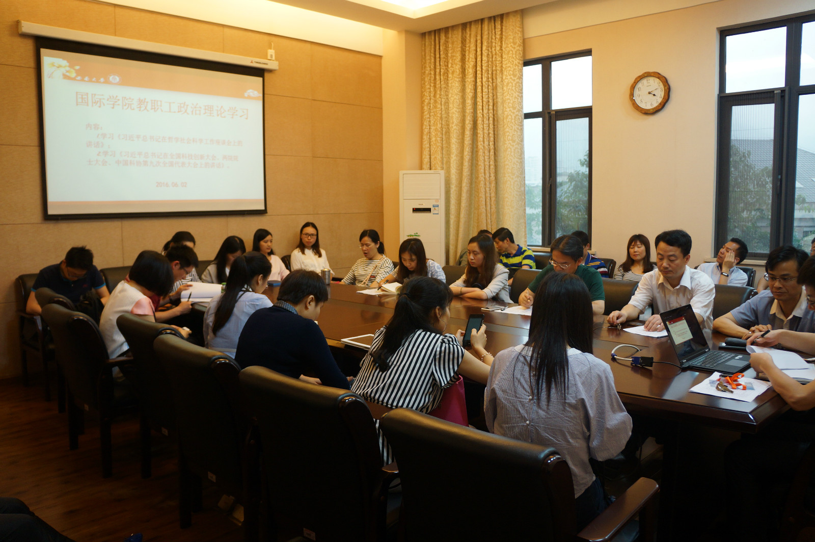 2016年6月2日下午4:00suncitygroup太阳集团在紫云楼310会议室开展政治理论学习。在公司党总支书记刘猛的主持下,suncitygroup太阳集团全体教职工集体学习了《习近平总书记在哲学社会科学工作座谈会上的讲话》、《习近平总书记在全国科技创新大会、两院院士大会、中国科学第九次全国代表大会上的讲话》。大家纷纷结合自身情况对于作为科研工作者如何在自己的岗位上为公司、国家做贡献进行了思考。