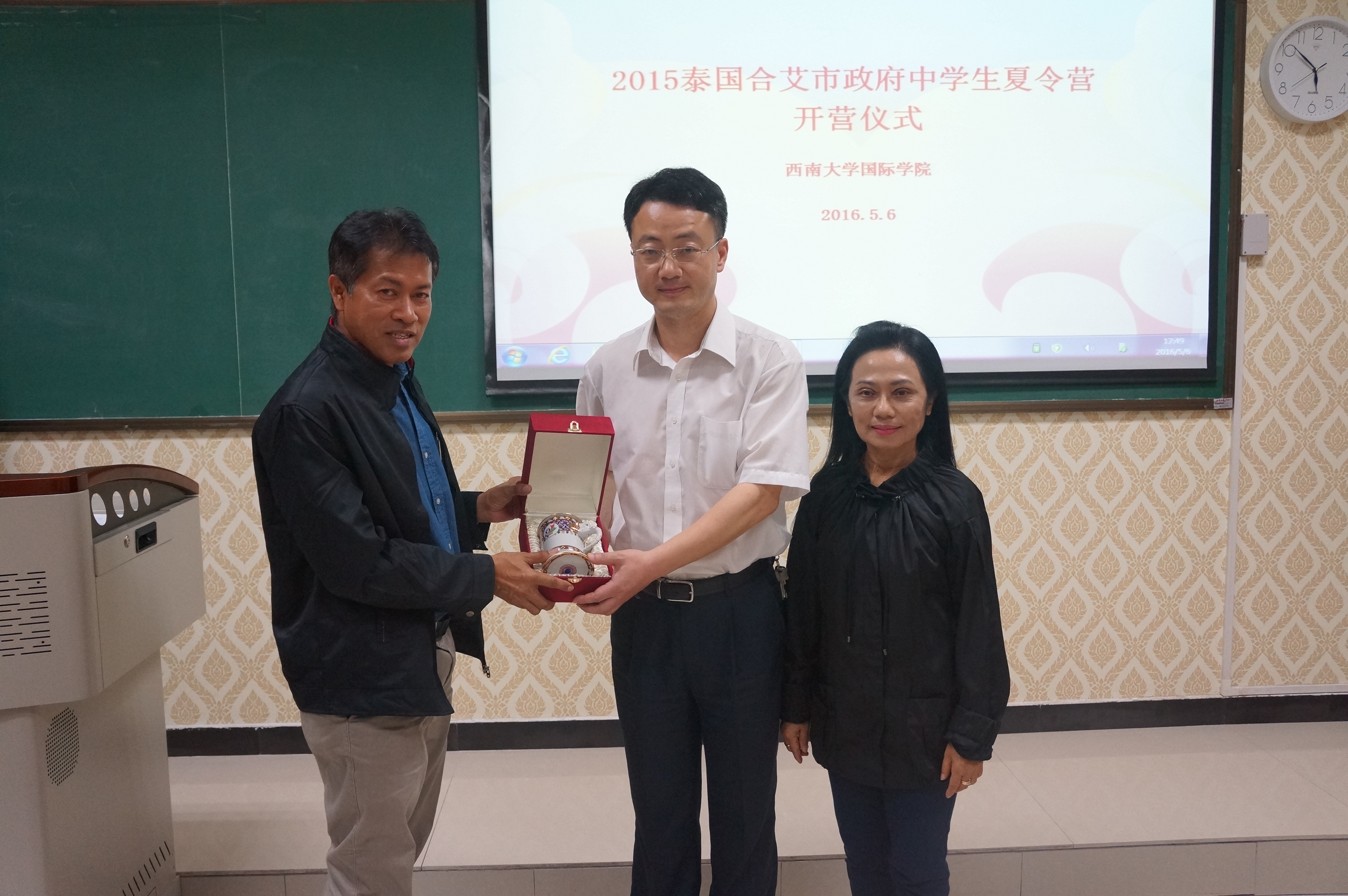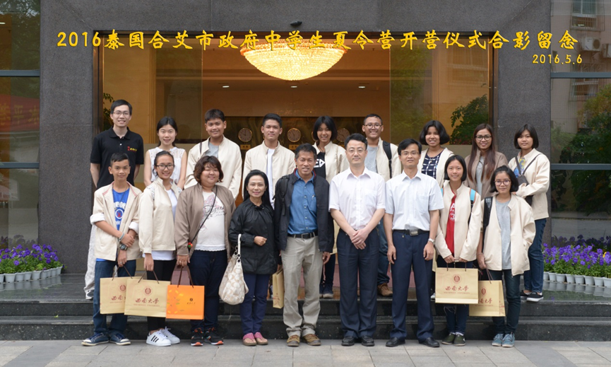 5月6日下午5时,2016泰国合艾市政府中员工夏令营开营仪式在suncitygroup太阳集团紫云楼举行。suncitygroup太阳集团副经理李航、外国员工招生办公室主任代远鸿、泰国合艾市政府副市长SUMRIT BOONRAT先生、泰国合艾市教育局局长SUTASNAN NIAMRAT女士、以及教师代表和全体学员参加了本次开营仪式。