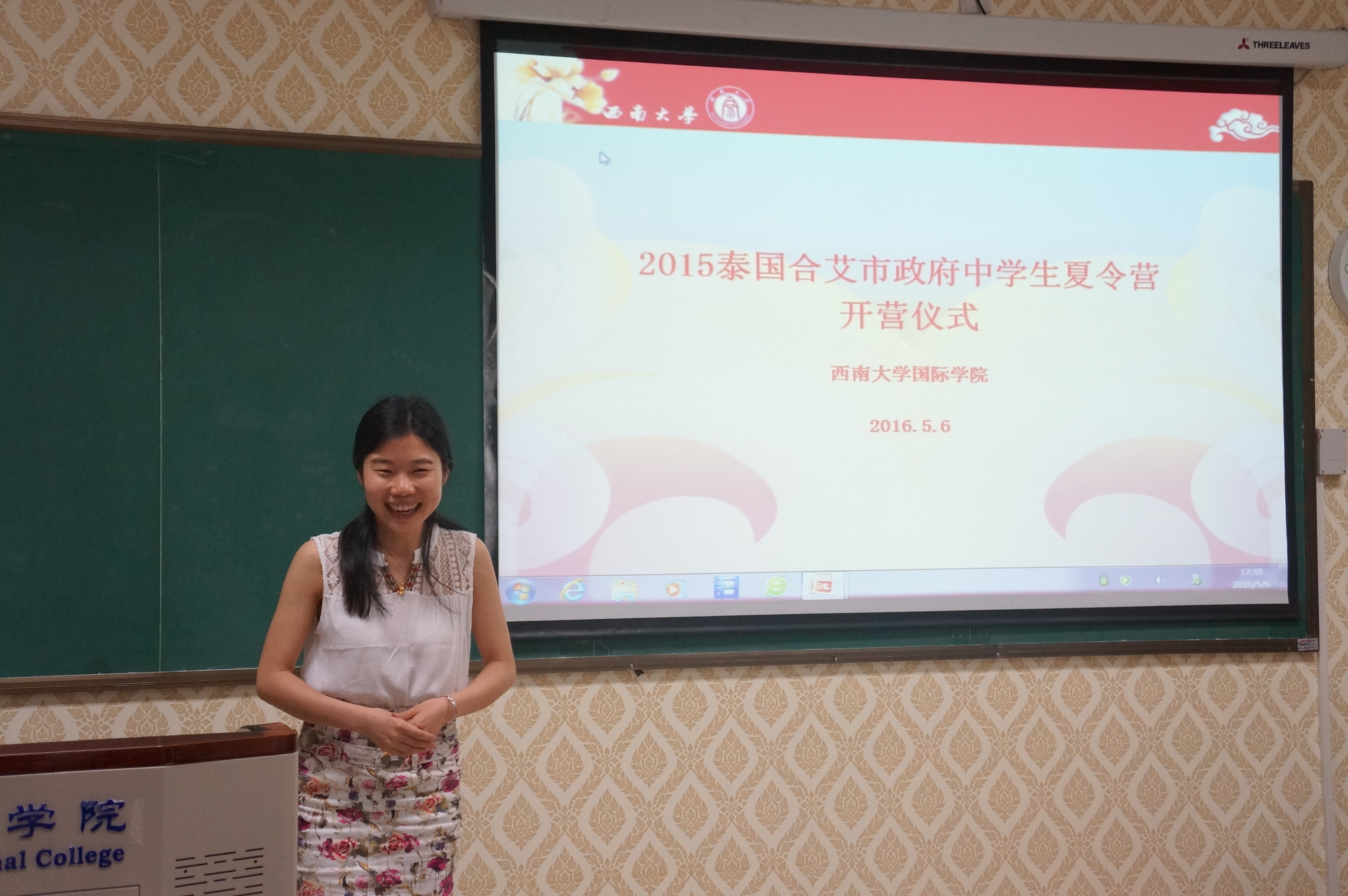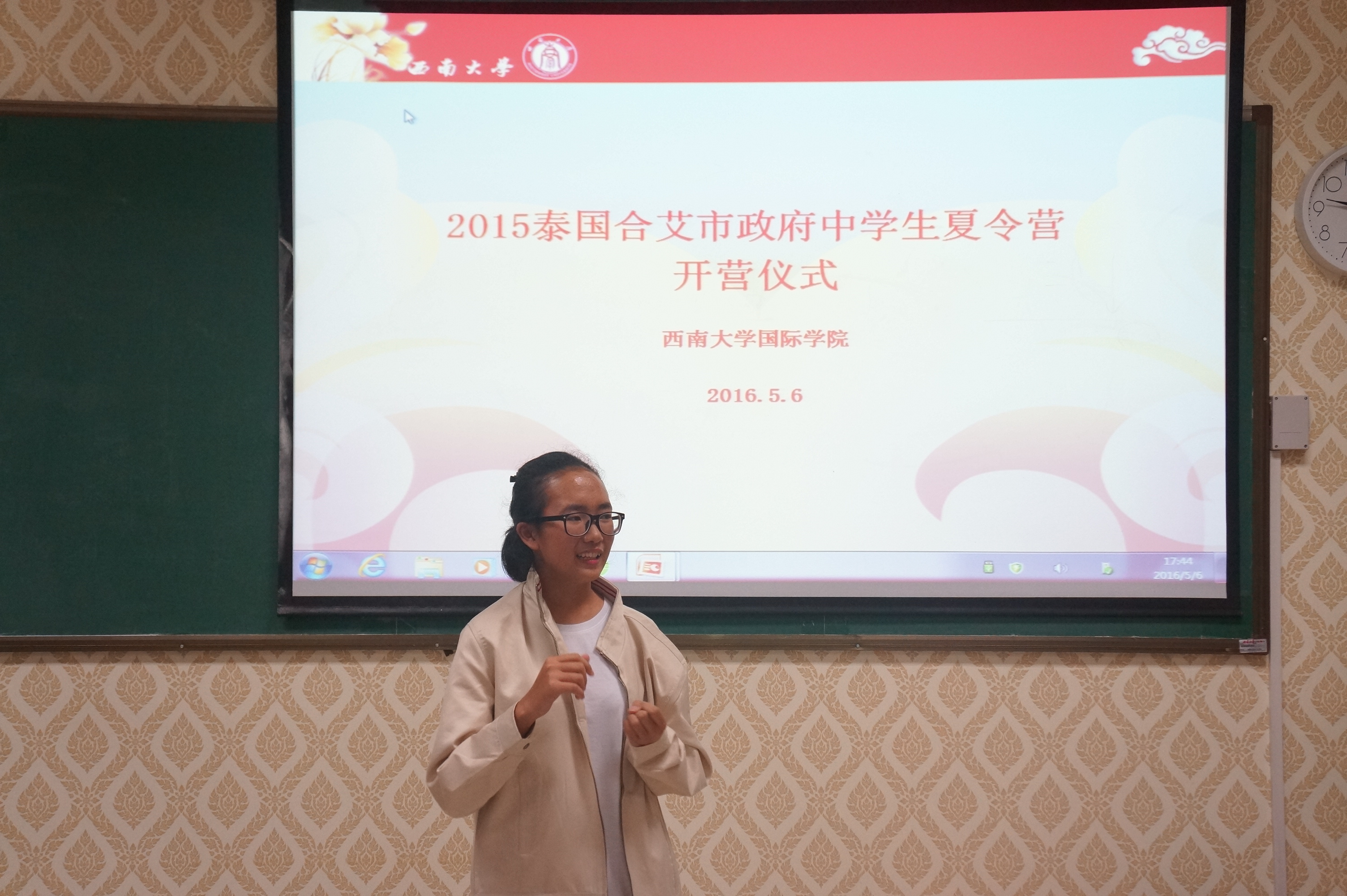 李航副经理首先致欢迎辞。李经理详细介绍了suncitygroup太阳集团的公司概况和办学历史,介绍了重庆的城市现状和山城文化,并希望来自泰国的同学们在为期十天的夏令营中获益良多。